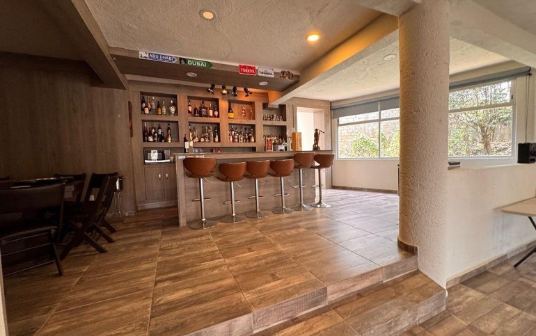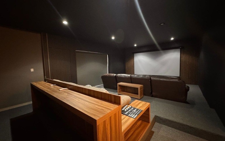 Sala de cine para 10 personas, con barra de café.