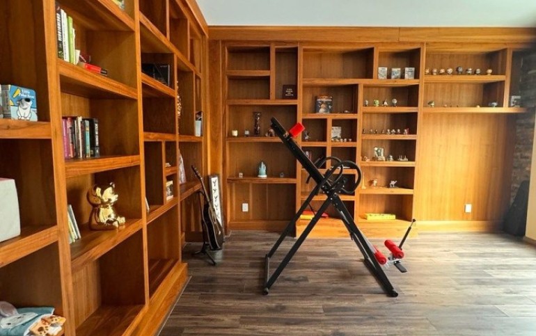 Estudio con una biblioteca amplia.