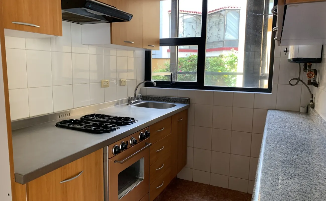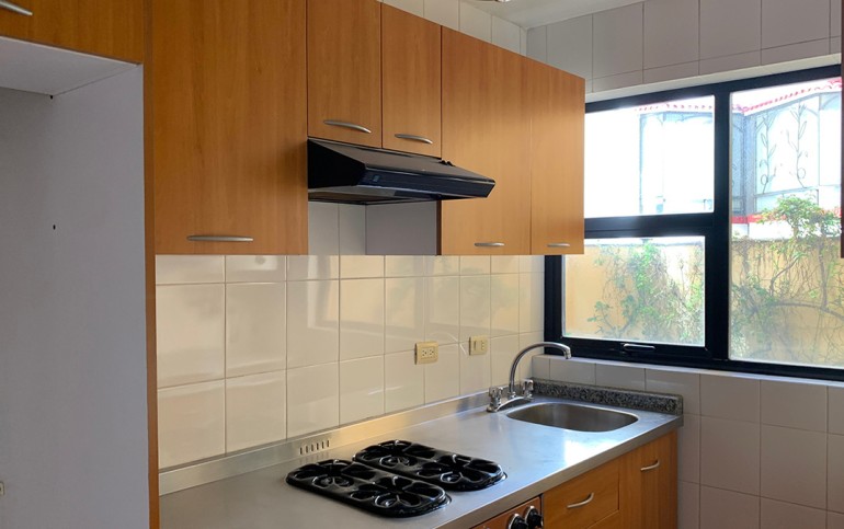 1 area social grande de sala comedor y cocina cerrada, 1 medio baño de visitas, y un baño completo en la recámara, estacionamiento para 1 auto pequeño.