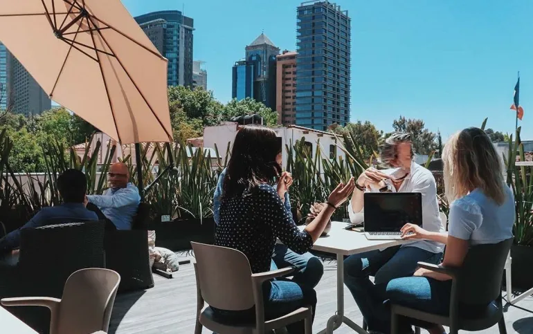 Venta con Inquilinos Construcción: 1000 m2. Terreno: 550 Niveles construidos: 3 Estacionamiento para 3 autos, con opción a 6. · 3 pisos Acondicionados con áreas de trabajo, salas de juntas, baños, bodegas, recepción, cocineta, área de computo. · Uso de suelo comercial-oficinas. · La casa está rentada hasta julio del 2025, se vende con los inquilinos.