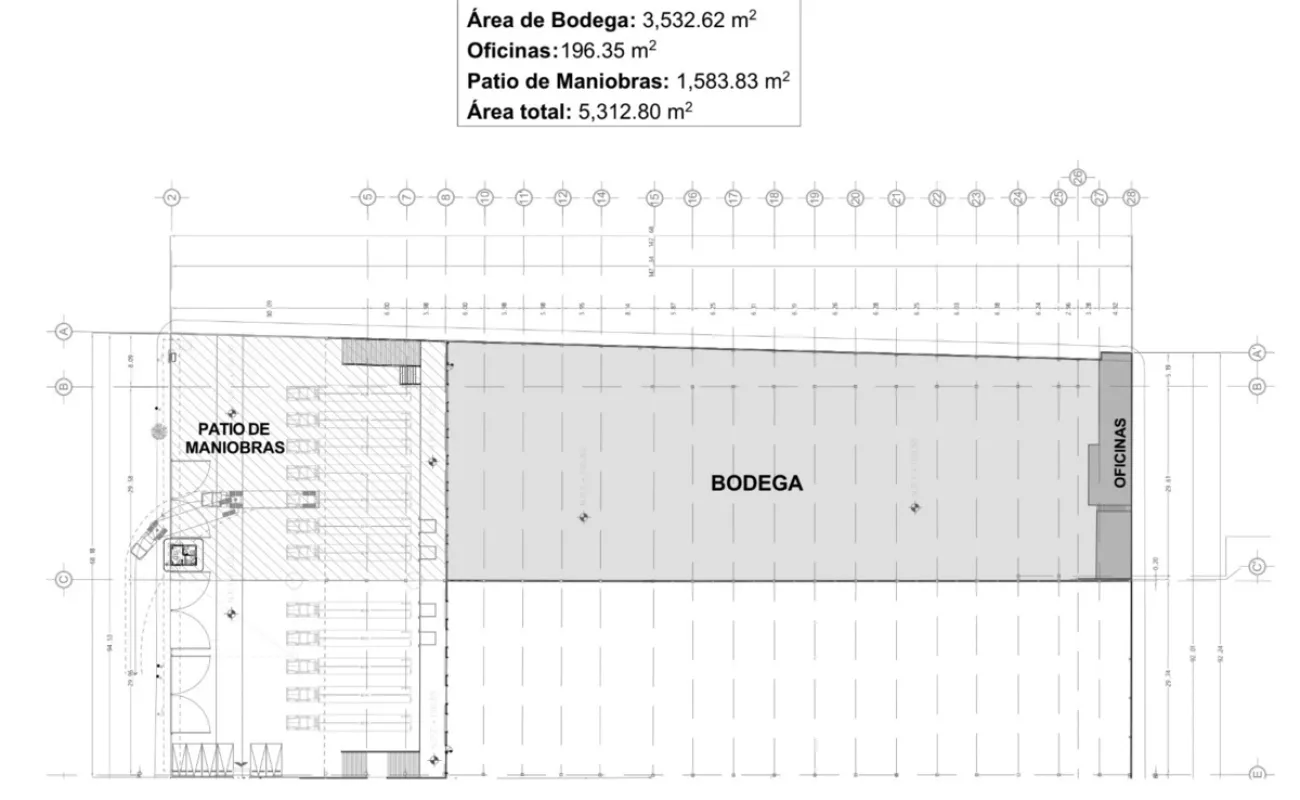 • Área de bodega: 3,532.62 m²
