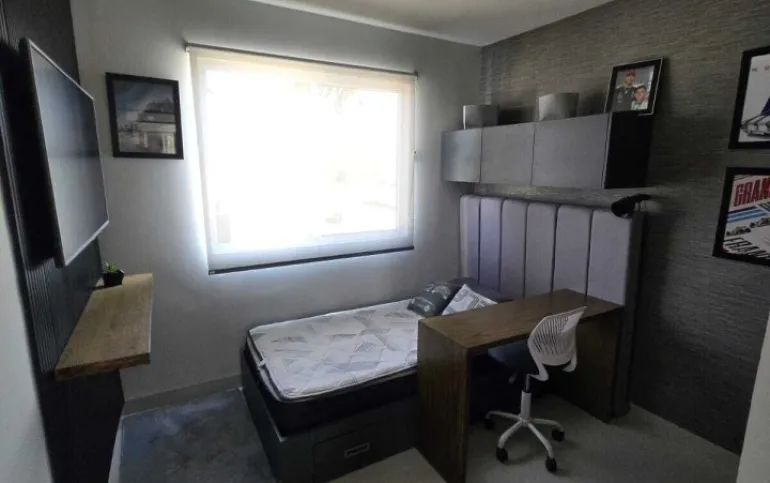 EN PLANTA ALTA CUENTA CON AREA DE T V, RECAMARA PRINCIPAL AMPLIAS CON VESTIDOR Y BAÑO CON CANCELES DE CRISTAL TEMPLADO, DOS RECAMARAS SECUNDARIAS CON CLOSET QUE COMPARTEN BAÑO.