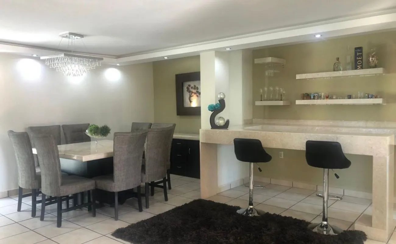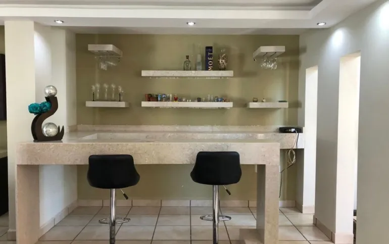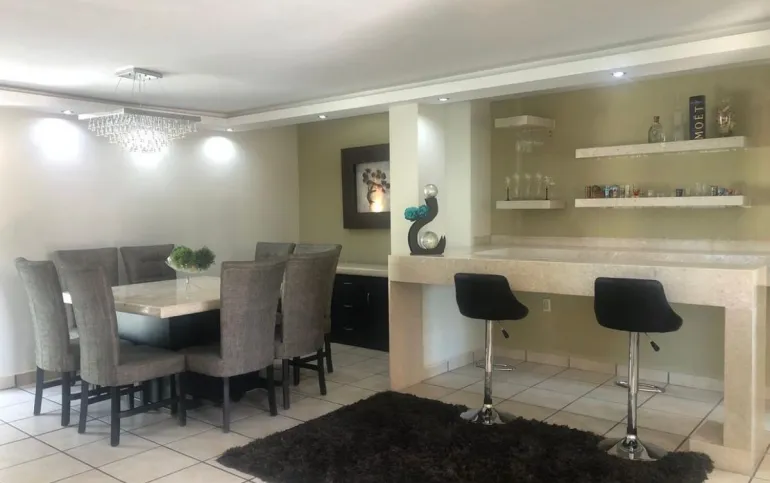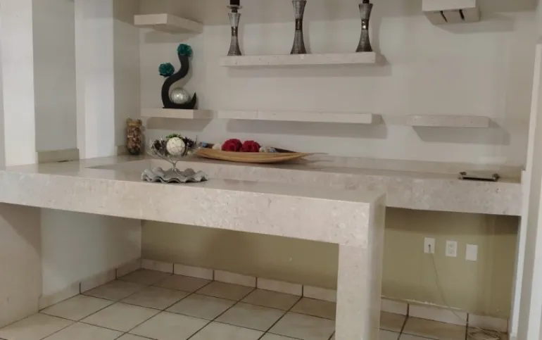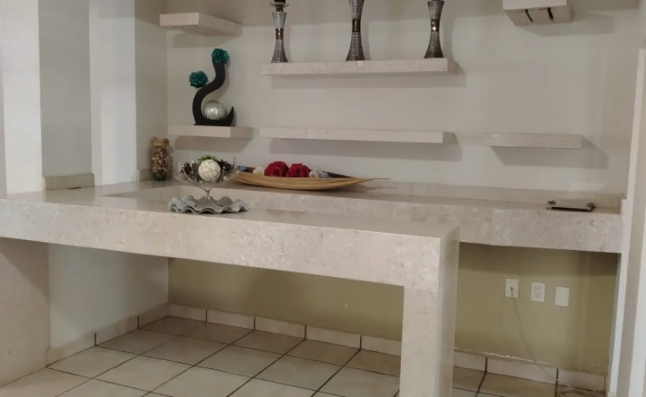 Sala, comedor, cocina equipada, cuarto de lavado, barra cantina de mármol, una recámara con baño completo en planta baja o Family