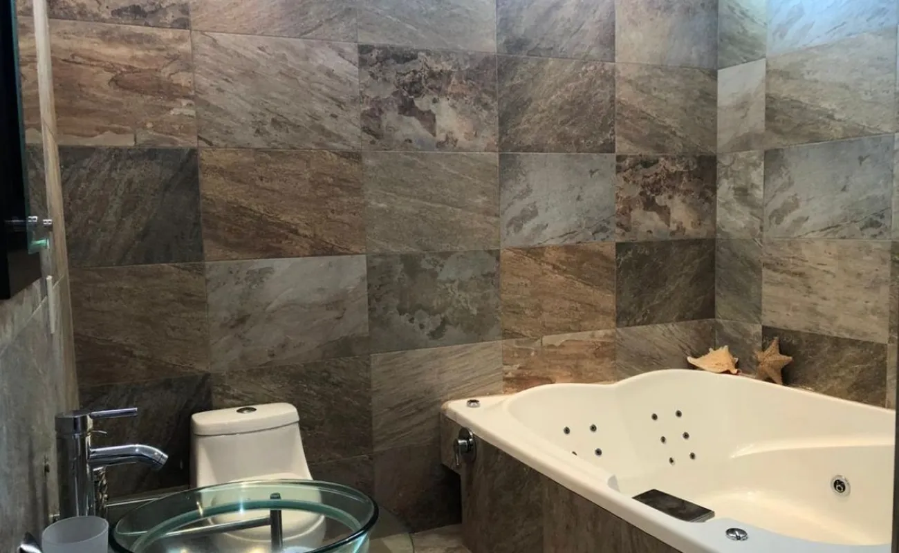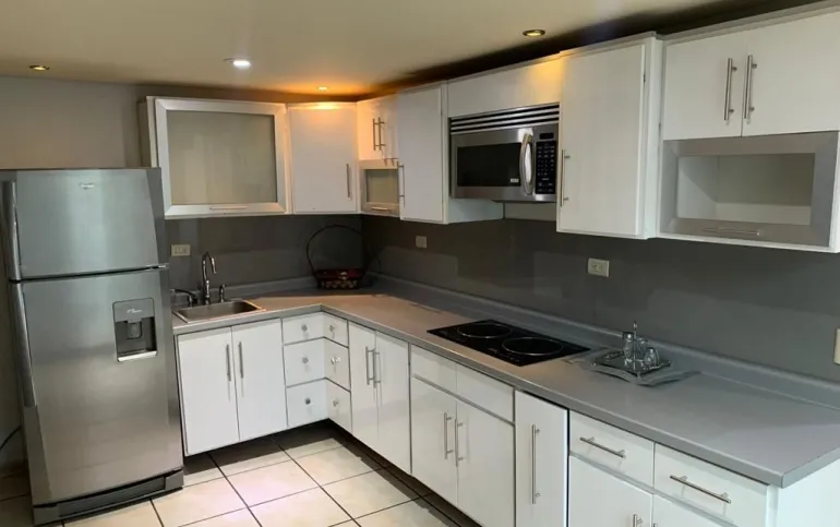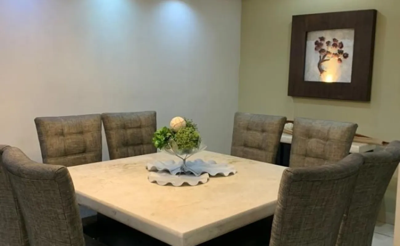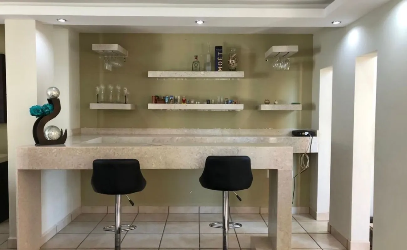 Sala, comedor, cocina equipada, cuarto de lavado, barra cantina de mármol, una recámara con baño completo en planta baja o Family