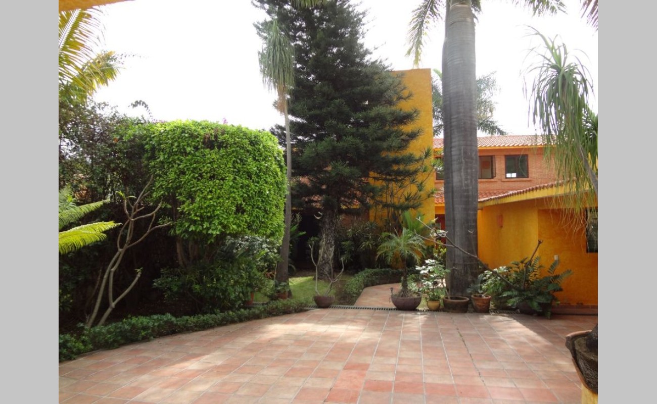 Residencia amueblada en Fracc. Las Fincas, Jiutepec, Mor. Preciosa residencia de 2 niveles. T: 1,020 m2 (frente 15.1 m; fondo 68 m); C: 422 m2; 378 m2 de jardín. P.B. Sala y comedor muy amplios que se integran a la terraza al abrir los ventanales abatibles, cocina integral con isla y barra, cuarto de lavado y área de tendido, amplia alacena. Estudio o 4a recámara, baño completo para visitas. Bello jardín al frente y enorme jardín al fondo con grandes palmeras, alberca con calefacción, jacuzzi, baño de vapor, bar con terraza y asador, salón de juegos o de usos múltiples. Bungalow para invitados (recámara, baño y cocineta). Estacionamiento para 4 autos. P.A.: Amplia recámara principal con walk in closet y baño, 2 recámaras junior con closet-vestidor y baño, closet de blancos. Con sonido ambiental en el jardín, protegida con alarma de seguridad. En fraccionamiento cerrado con vigilancia las 24 hrs. Envidiable calidad de vida.