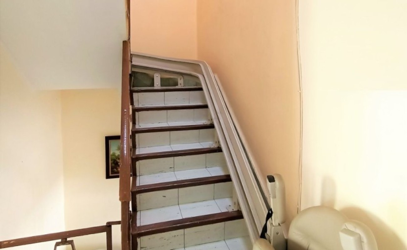 Escaleras internas con silla eléctrica para apoyo.