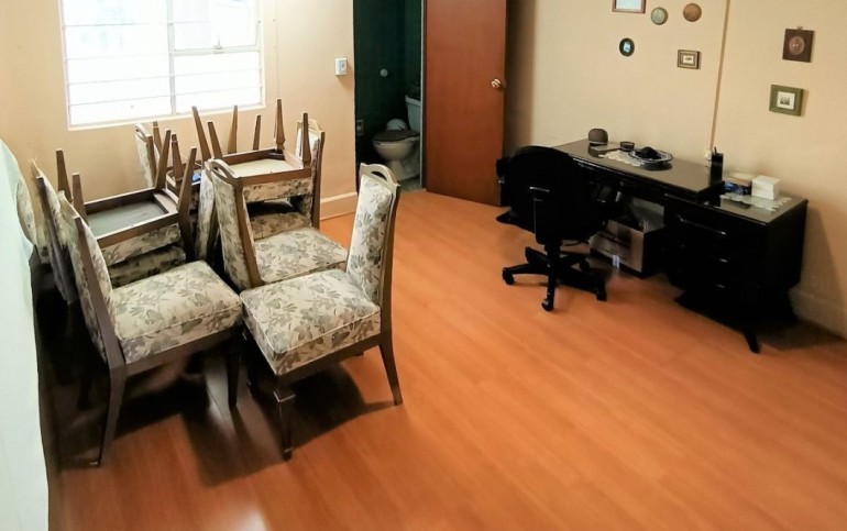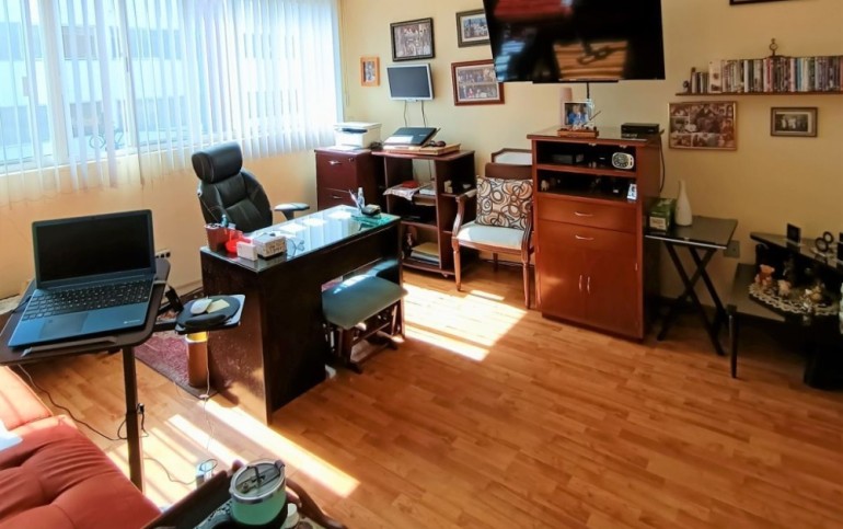 Estudio u oficina con baño. Patio trasero con cuarto adaptado como bodega o cuarto de servicio con baño completo.