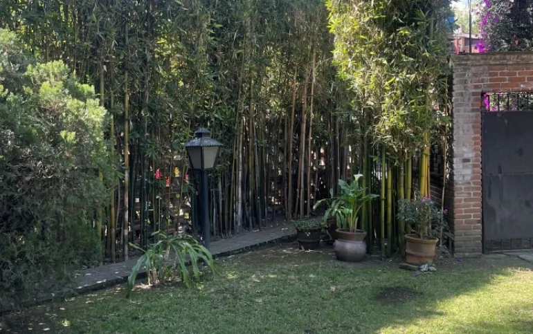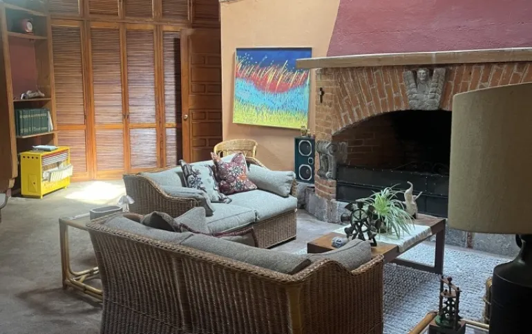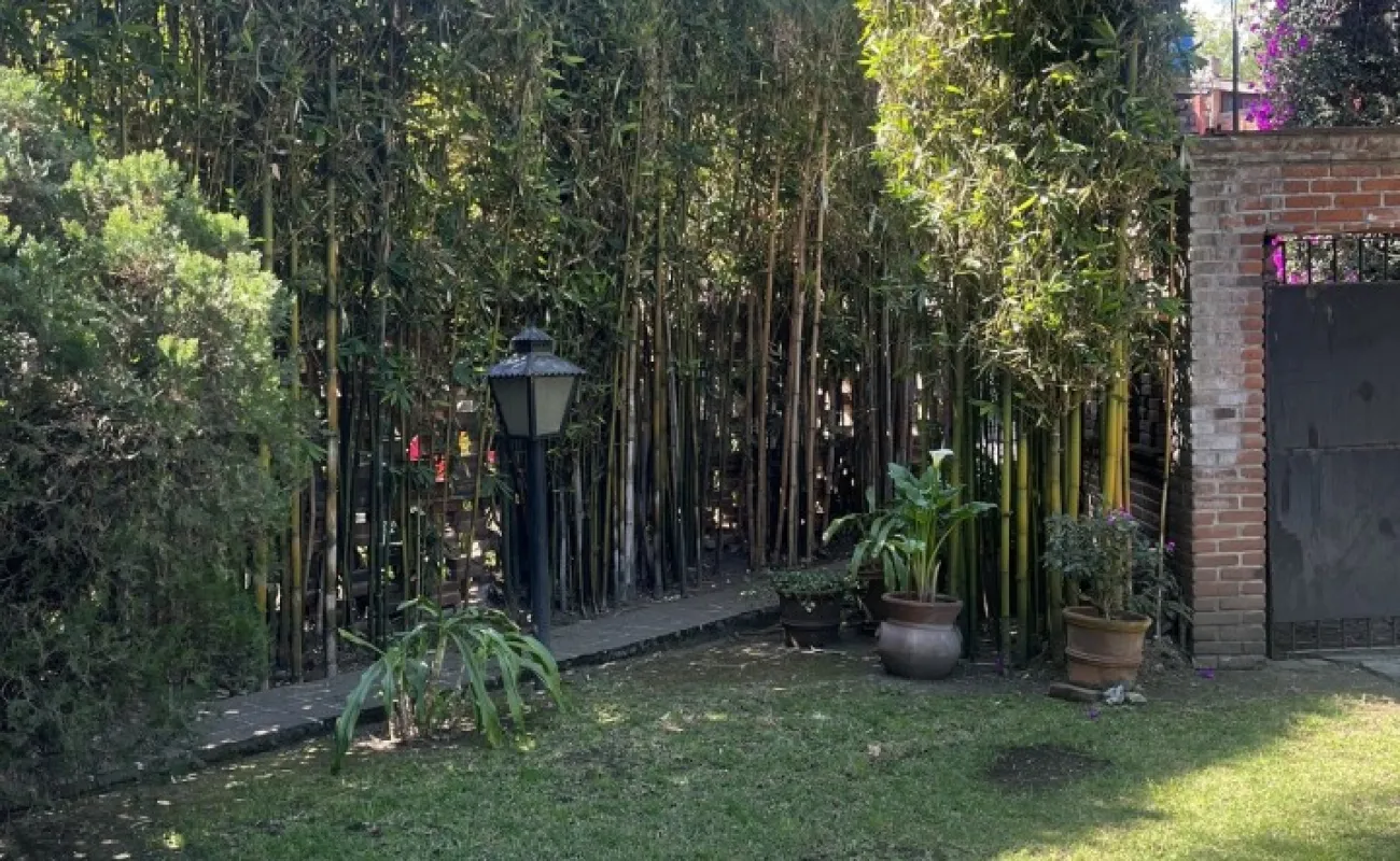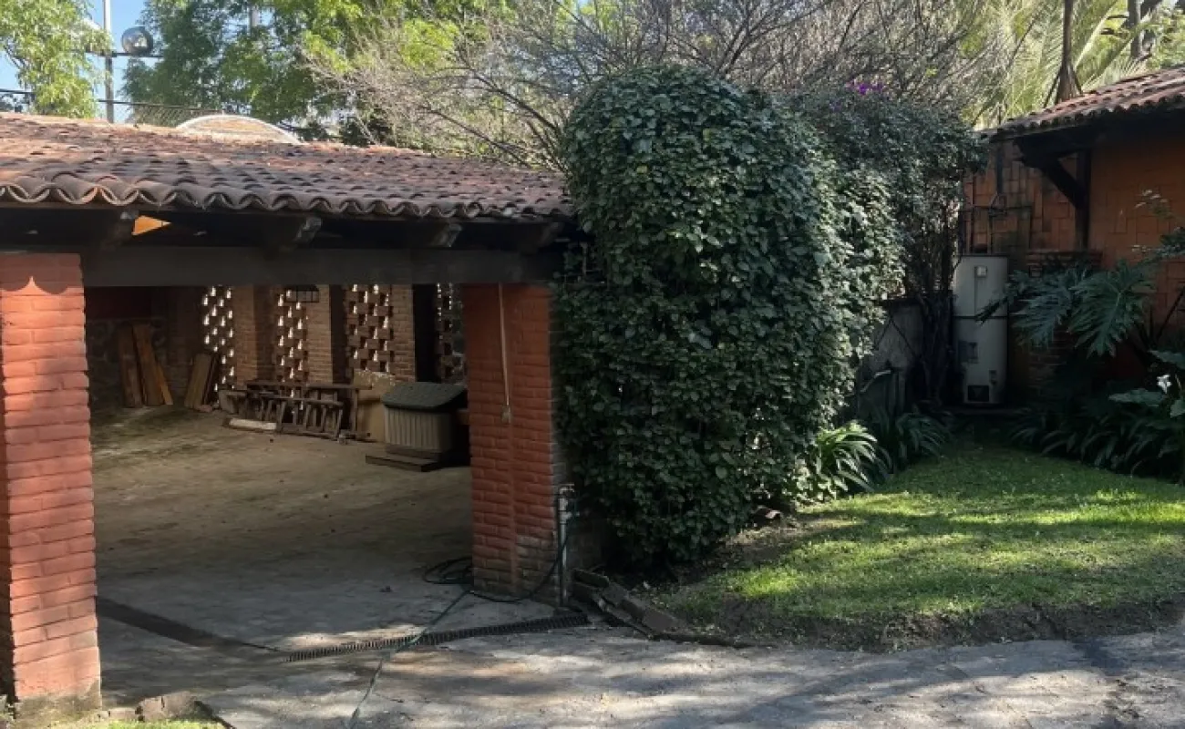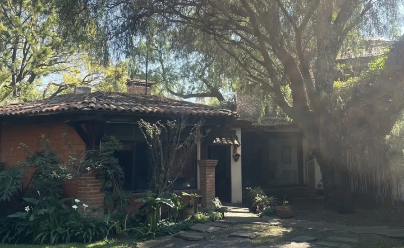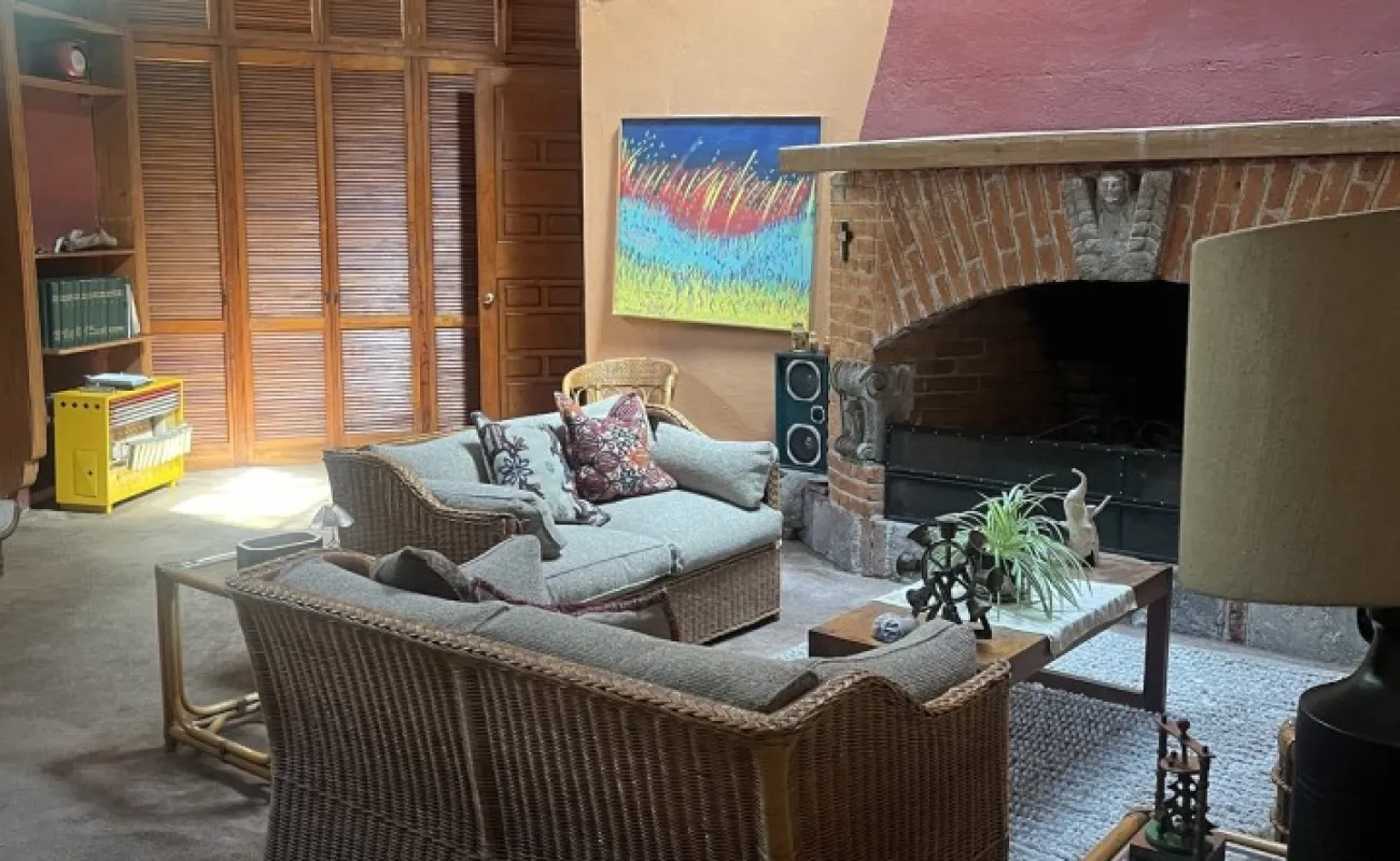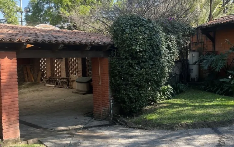 Hermosa y espaciosa casa lista para remodelar en una linda y segura privada estilo colonial con jardín privado y una pequeña cabaña totalmente independiente de la casa principal de una recámara, baño completo, pequeña cocina y chimenea.