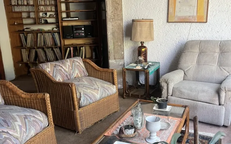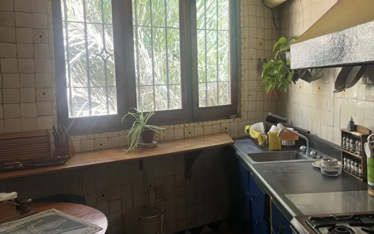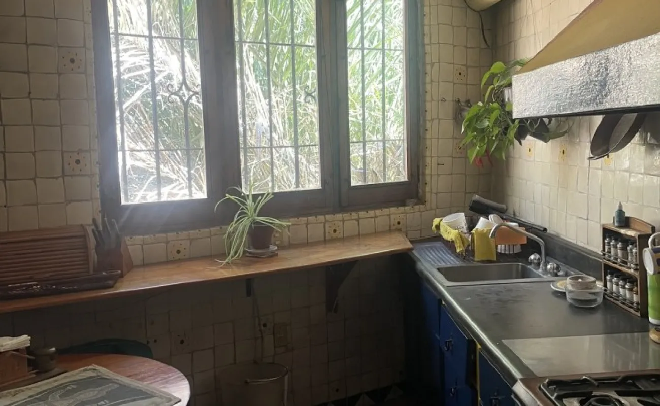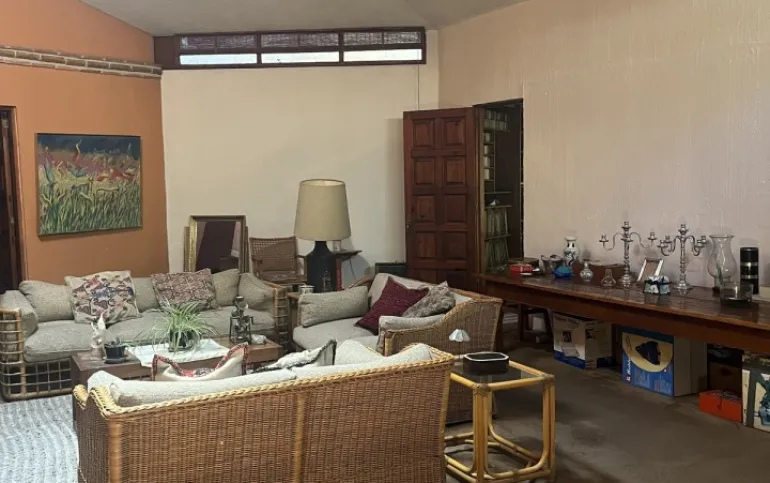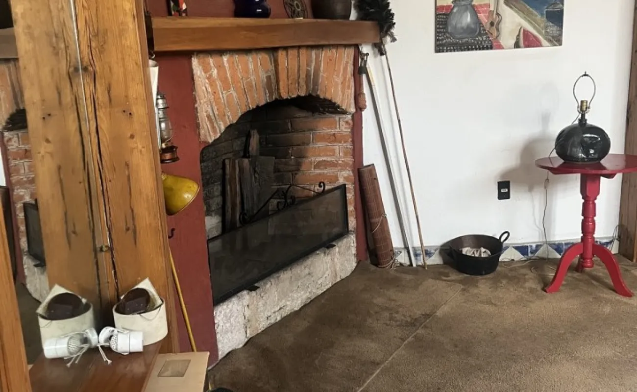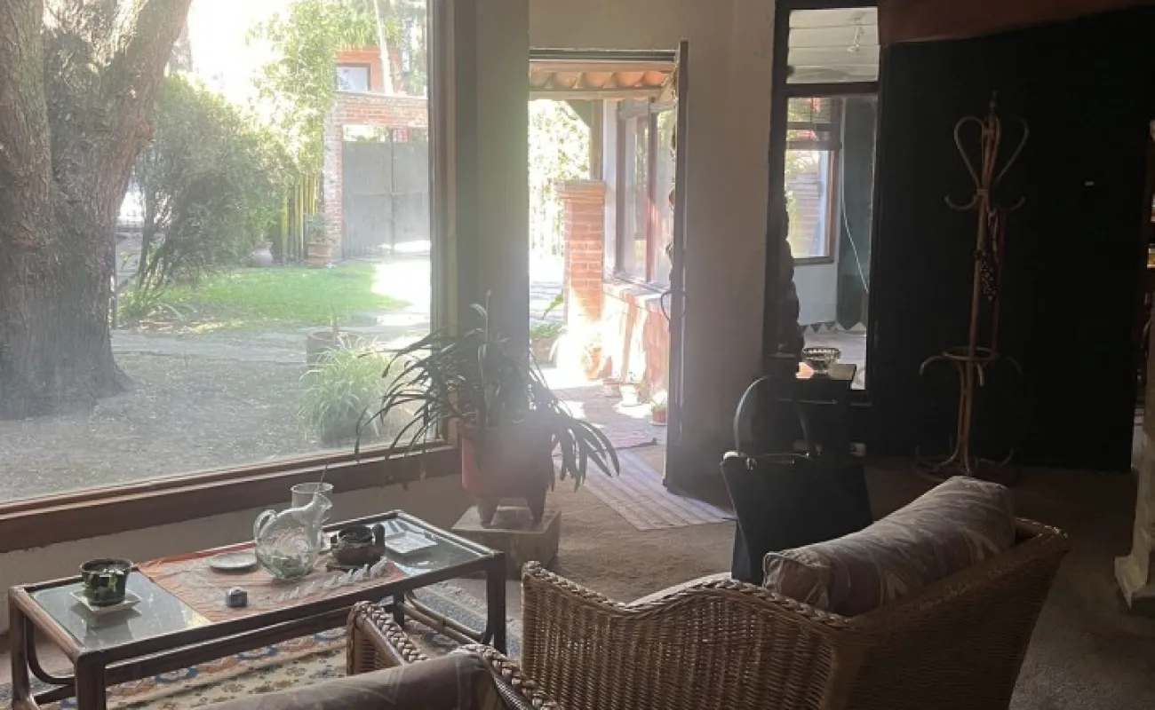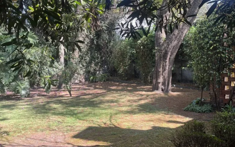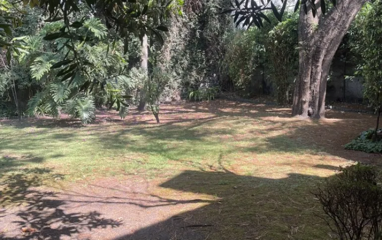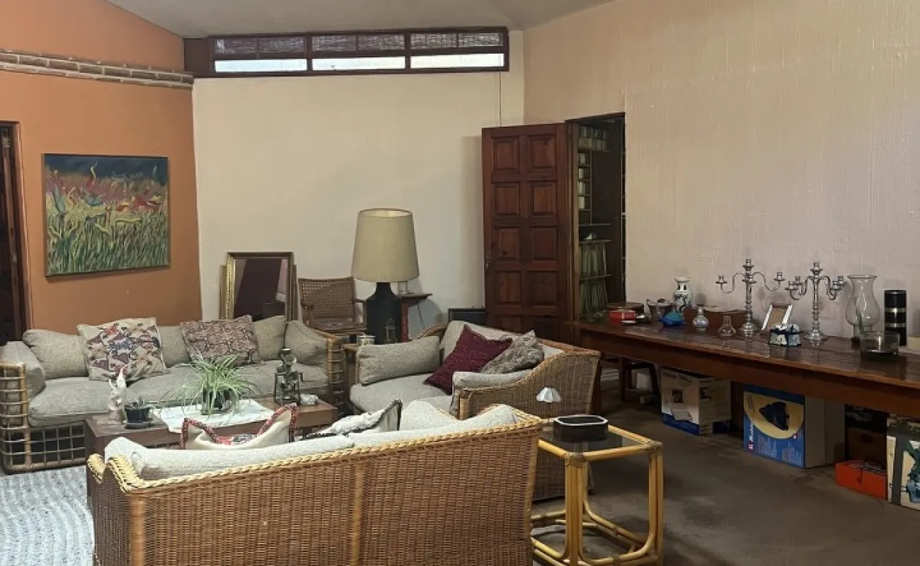 Hermosa y espaciosa casa lista para remodelar en una linda y segura privada estilo colonial con jardín privado y una pequeña cabaña totalmente independiente de la casa principal de una recámara, baño completo, pequeña cocina y chimenea.