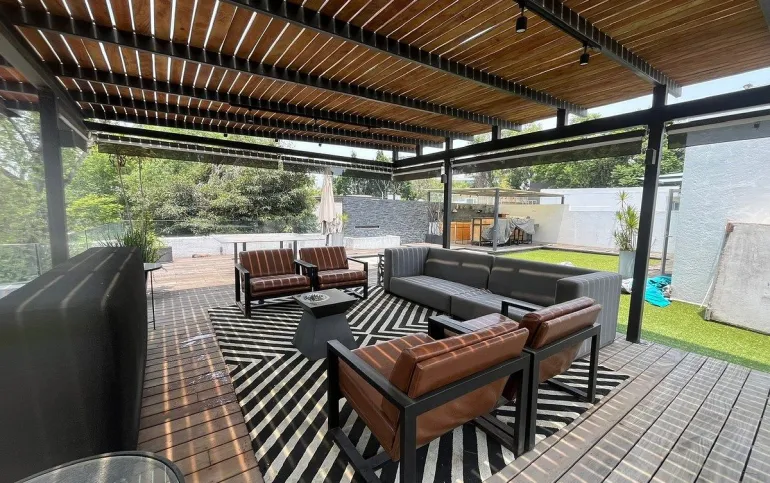 Residencia con espacios amplios y luminosos, diseñada para convivir con comodidad. Sala, comedor y una gran cocina de inspiración contemporánea, 1/2 baño de visitas, family room, terraza y un acogedor jardín. Cuenta con 3 recámaras con baño, incluyendo una recámara principal con vestidor. Ademas de un roof con pergola y asador y 1/2 baño. Área de lavandería y patio, 2 cuartos de servicio con baño, bodega y 3 estacionamientos. Cuenta con calefaccion