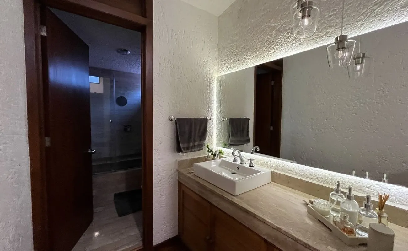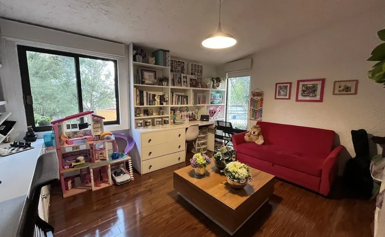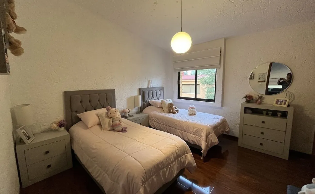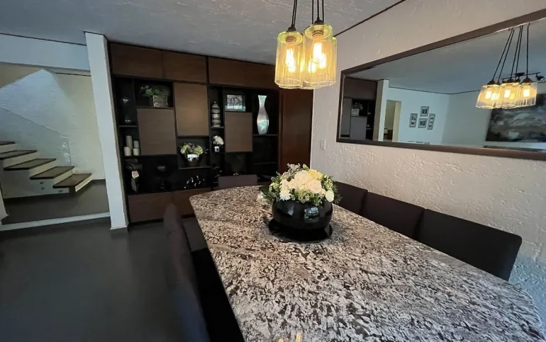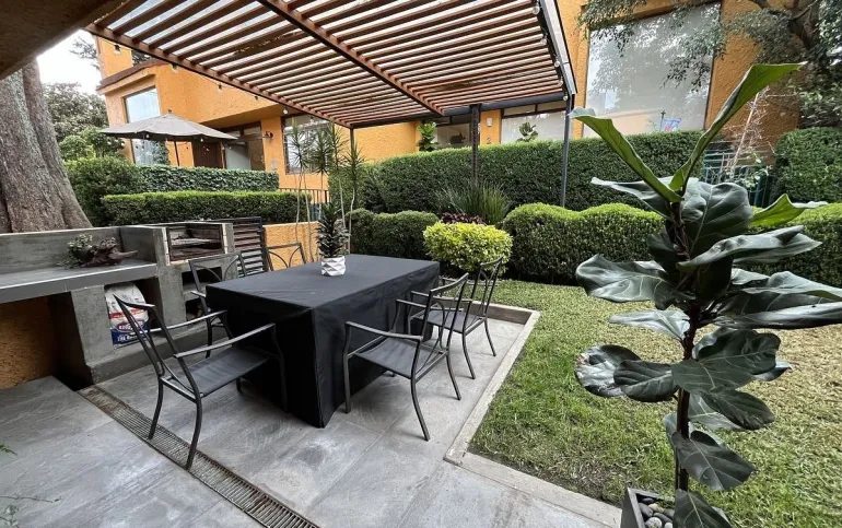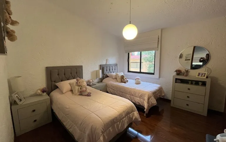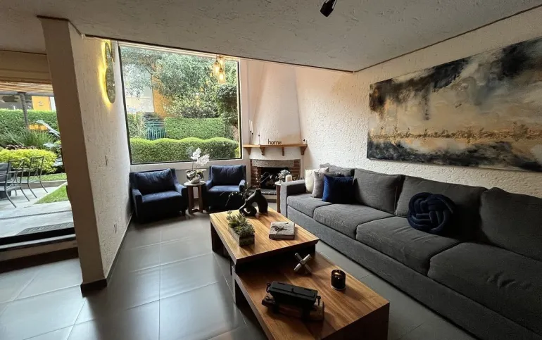 La casa fue remodelada en 2016, tiene 2 estacionamientos techados y bodega. Tiene entrando un lindo recibidor, medio baño de visitas, linda sala con doble altura y chimenea, comedor, cocina integral de granito con barra y gran alacena, patio de lavado, cuarto de servicio con baño. Sala y comedor dan a la terraza con pérgola y asador y a un lindo jardín privado. Tiene otra bodega abajo de las escaleras y subiendo un amplio y hermoso family room, las dos recámaras secundarias son muy amplias e iluminadas con gran closet de piso a techo y comparten baño completo. La recámara principal también es muy amplia con doble closet de piso a techo y baño completo adentro. $2500 de mantto