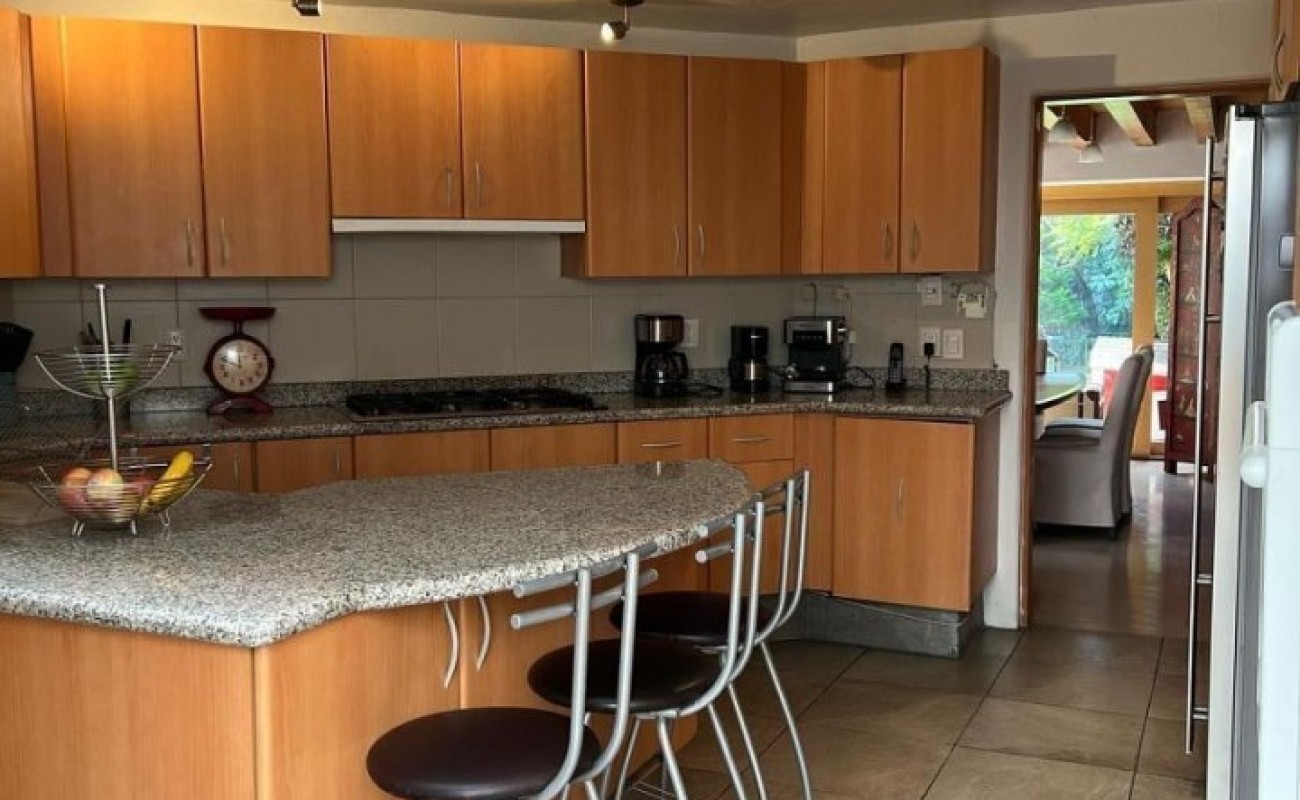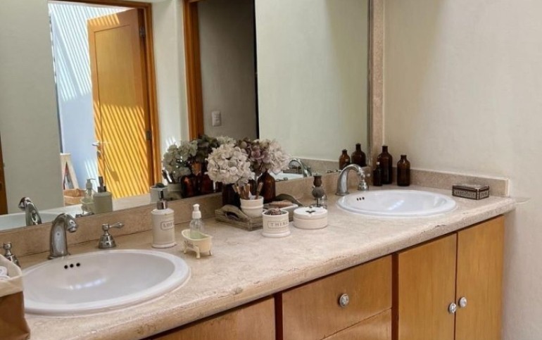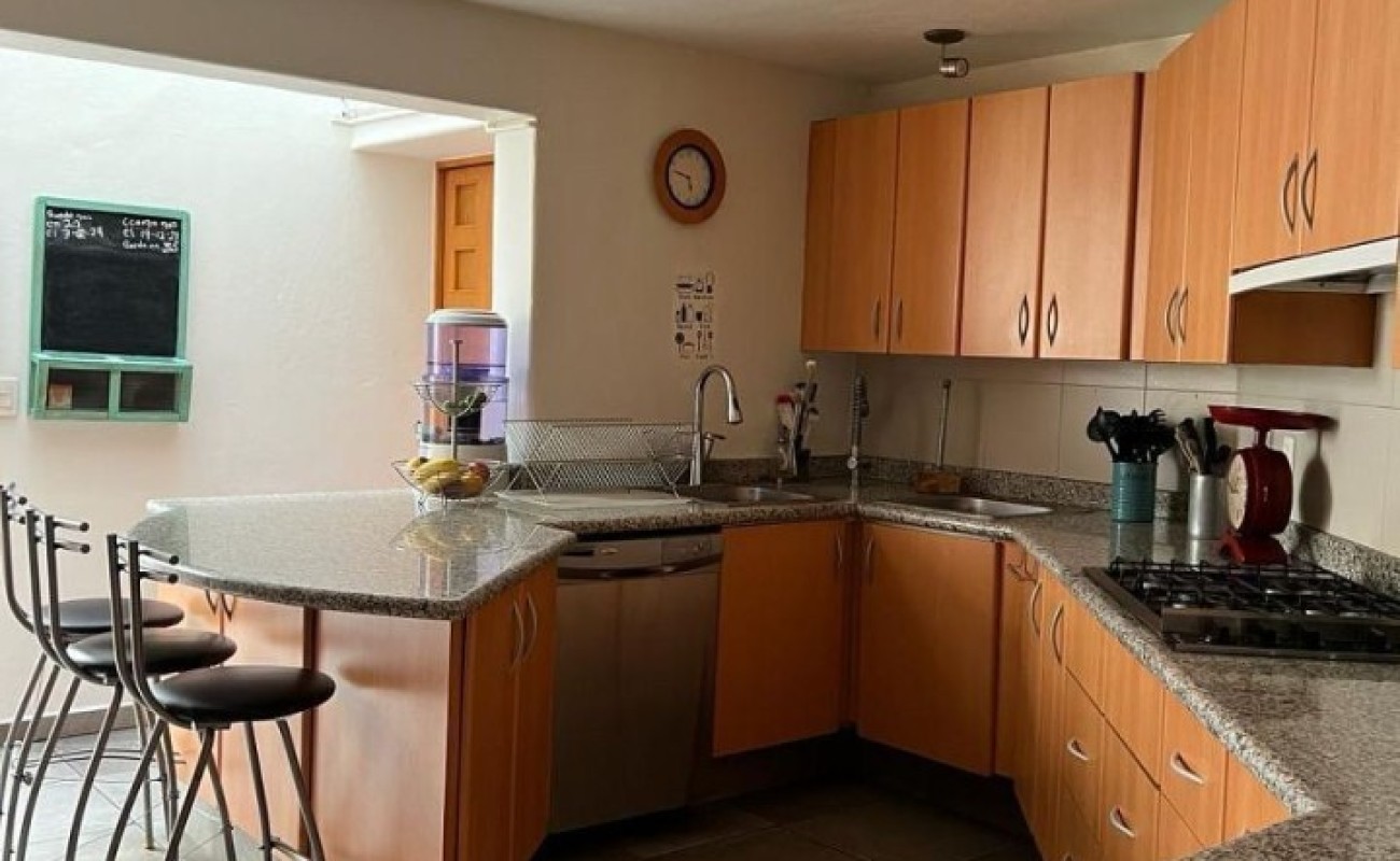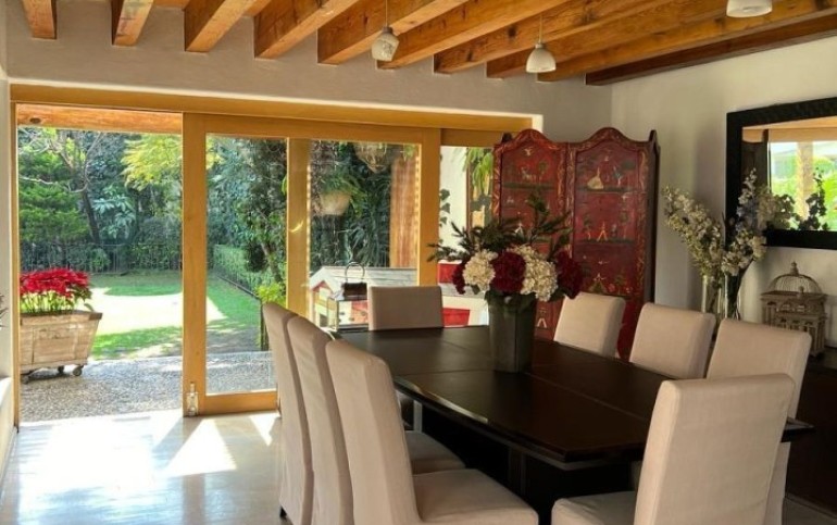 Espacios amplios, doble altura. Planta baja: sala, comedor, antecomedor, cocina, baño visitas, terraza jardín (140 m2), bodega, área de lavado.