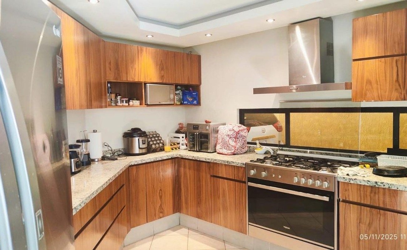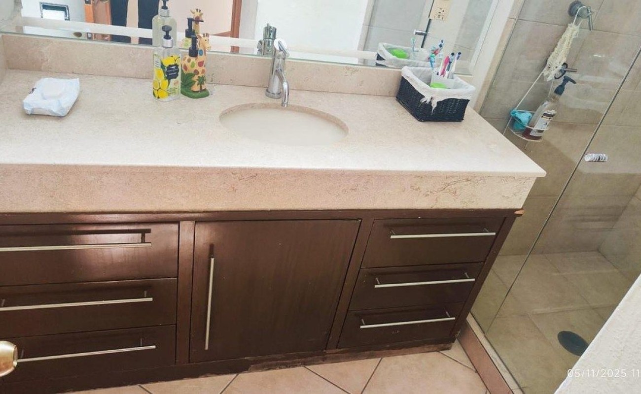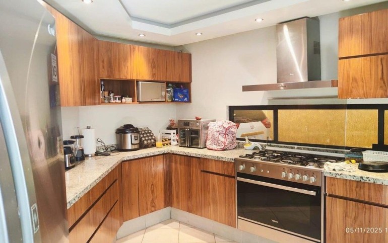 PB: Vestibulo, Amplia sala con doble altura muy iluminada, comedor con vista a patio interior, espaciosa cocina recién remodelada con cubierta de granito, alacena, medio baño, patio interior, cuarto de lavado y dos lugares de estacionamiento techados.
