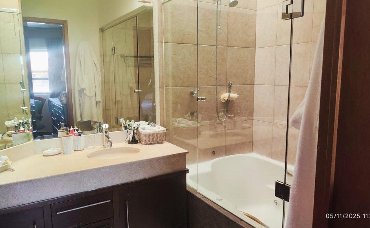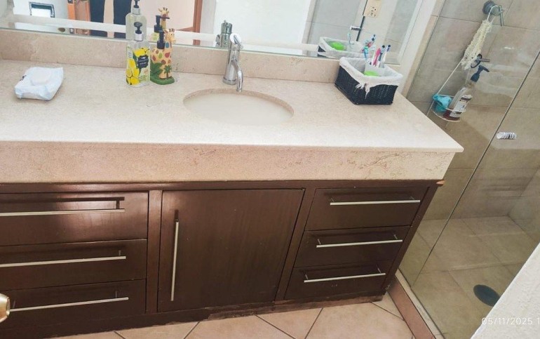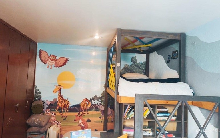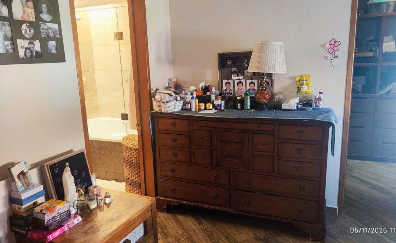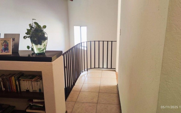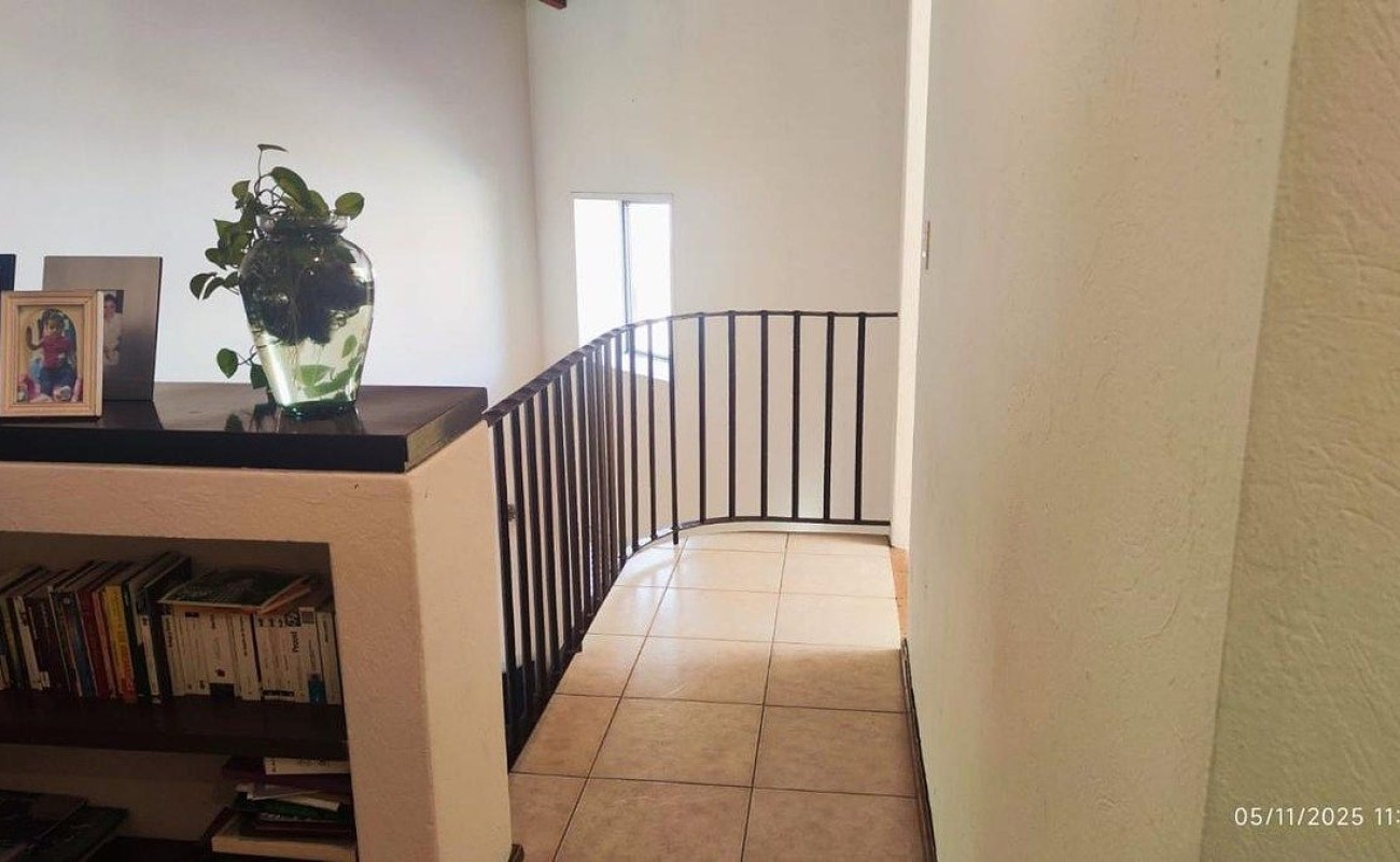 Planta Alta: 3 recamaras, recamara principal con dos amplios vestidores y baño completo, segunda recamara, con closet, la tercera recámara actualmente se utiliza como estudio, baño completo y pasillo que comunica la escalera con las tres habitaciones, así como escalera de acceso al tercer nivel donde se encuentra una segunda área de lavado y el cuarto de servicio con baño completo.