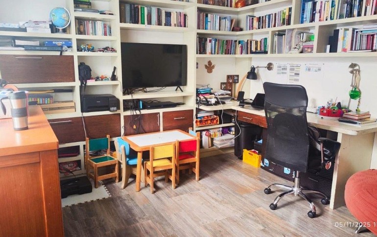 La casa no tiene vecinos en la parte de atrás colinda con un gran Jardín lo que la hace mas tranquila