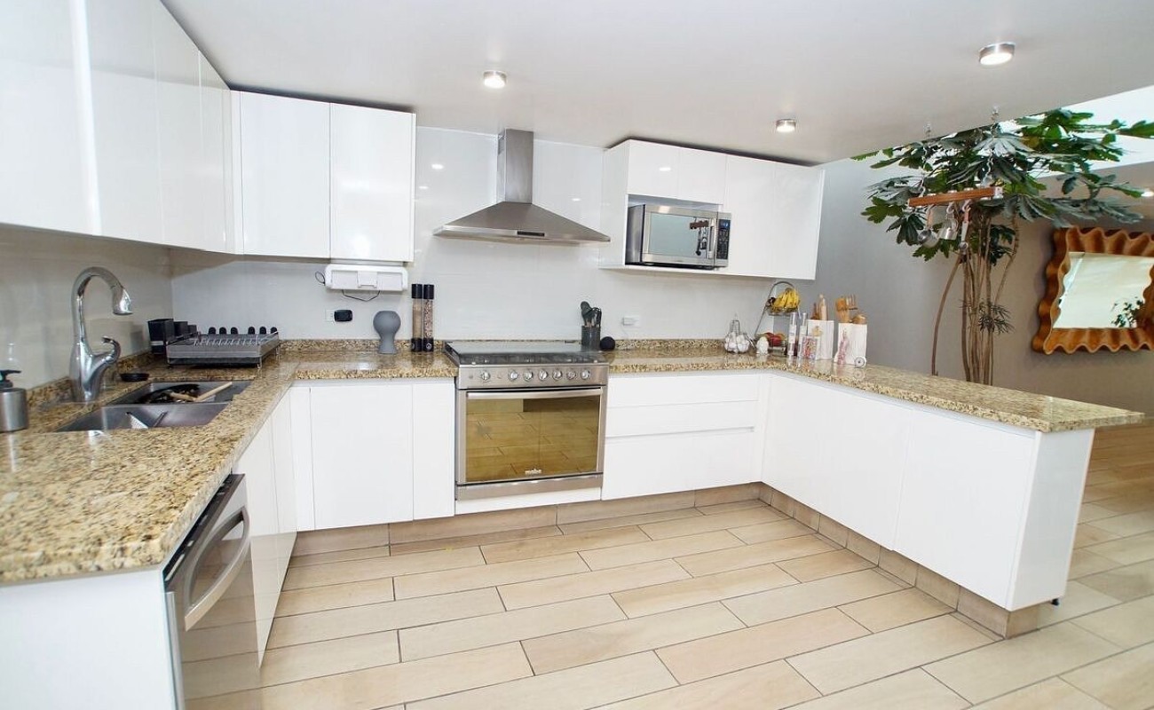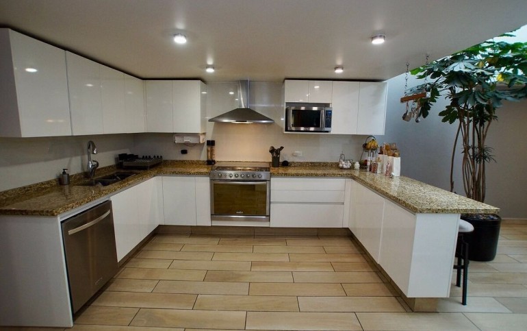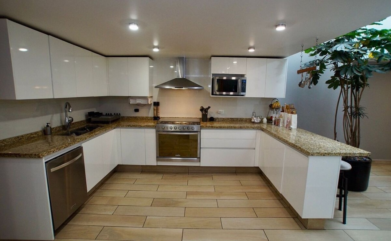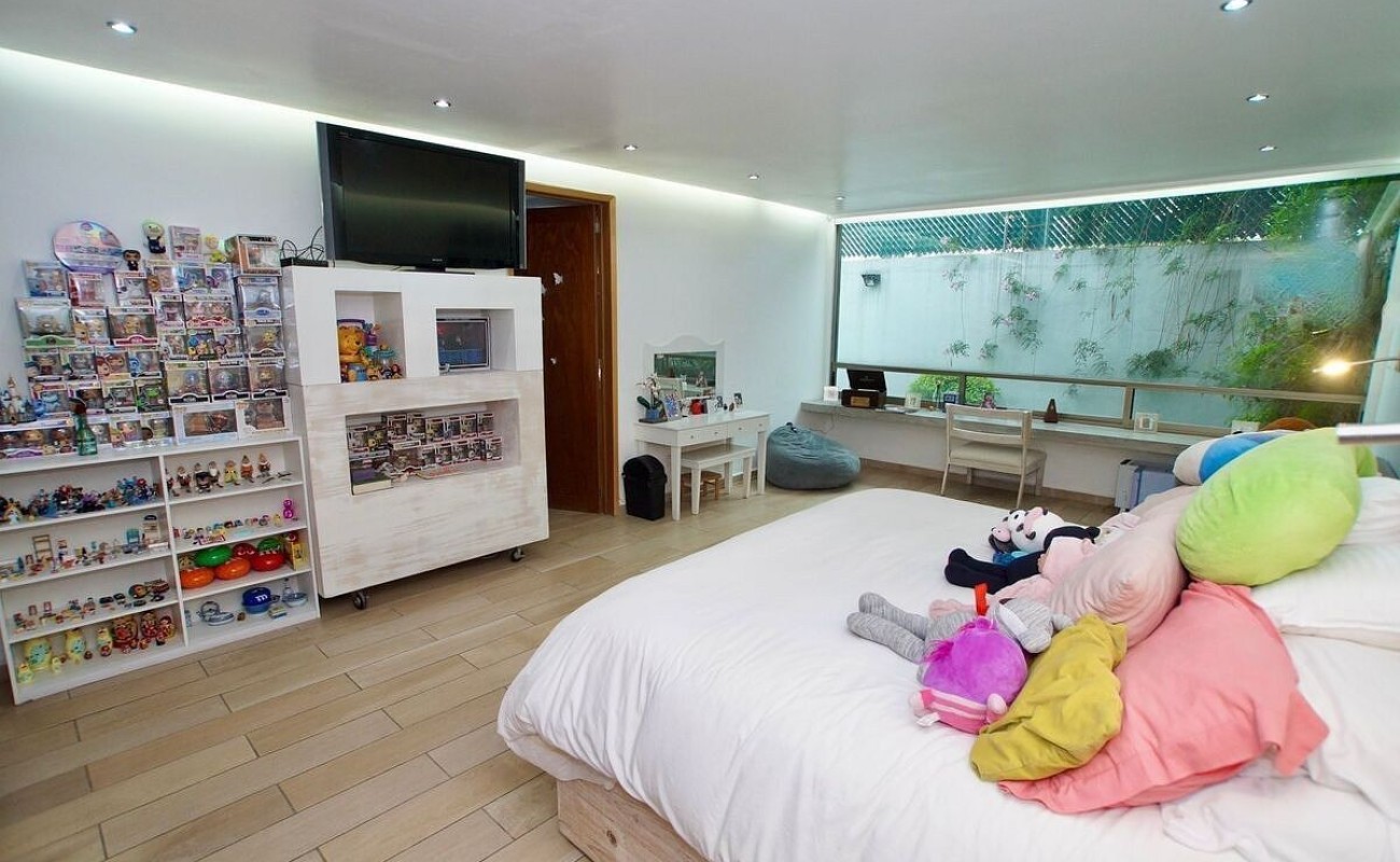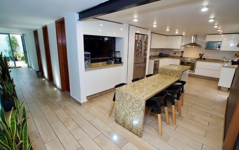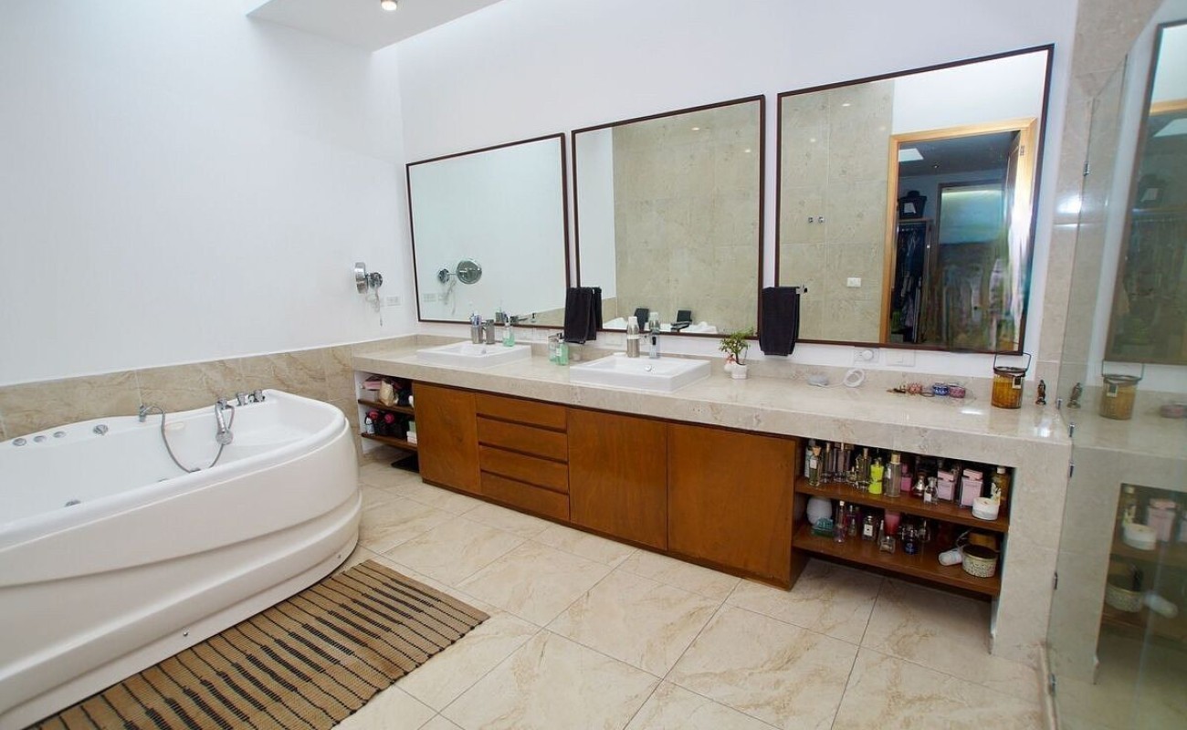 4 habitaciones, 5 baños y 3 medios baños.