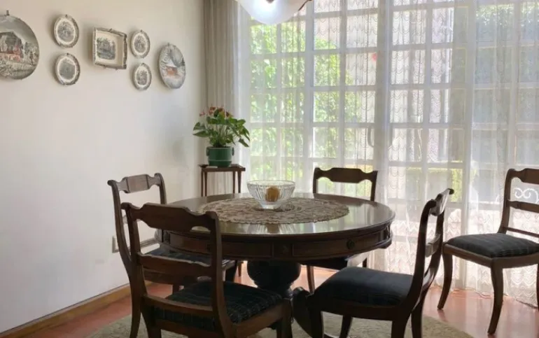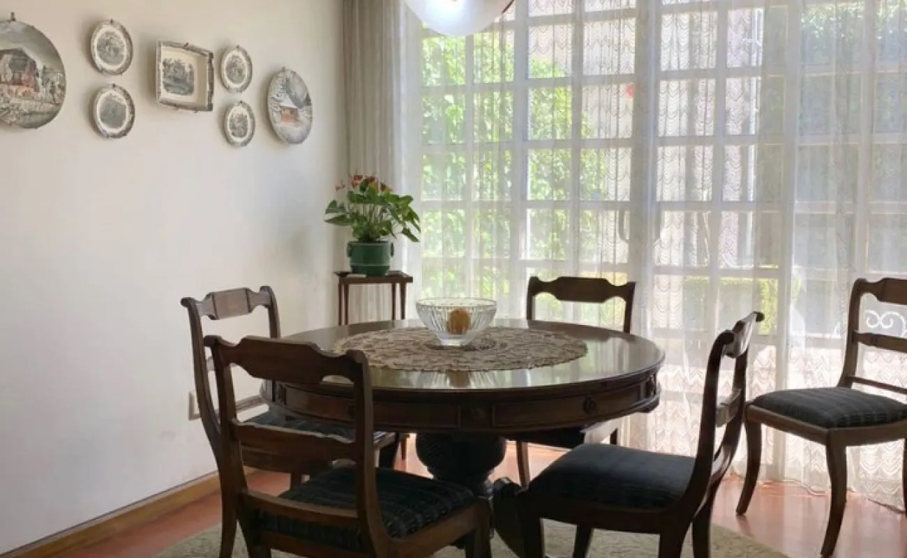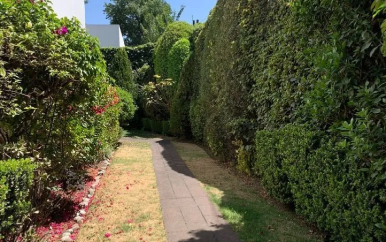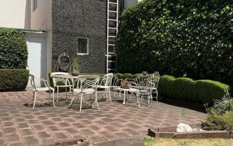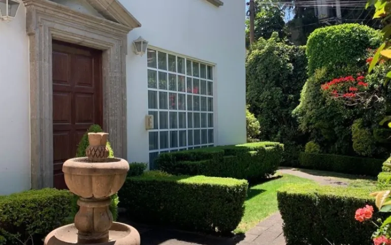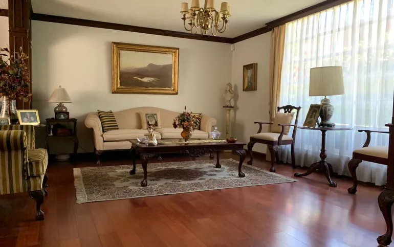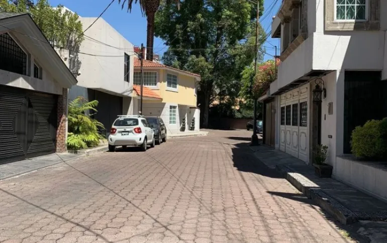 Casa sola en calle cerrada con vigilancia. Rodeada de jardín, excelente estado, 2 niveles, 2 estacionamientos, sala, comedor, terraza amplia a nivel jardín, cocina integral, desayunador, 1/2 baño visitas, cuarto de servicio, cuarto de lavado y patio de servicio amplio. 1er nivel 3 recámaras (principal con vestidor y baño, las otras 2 recámaras comparten baño), pequeña área para computadora.