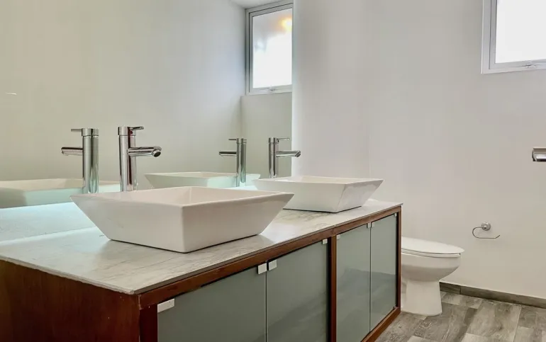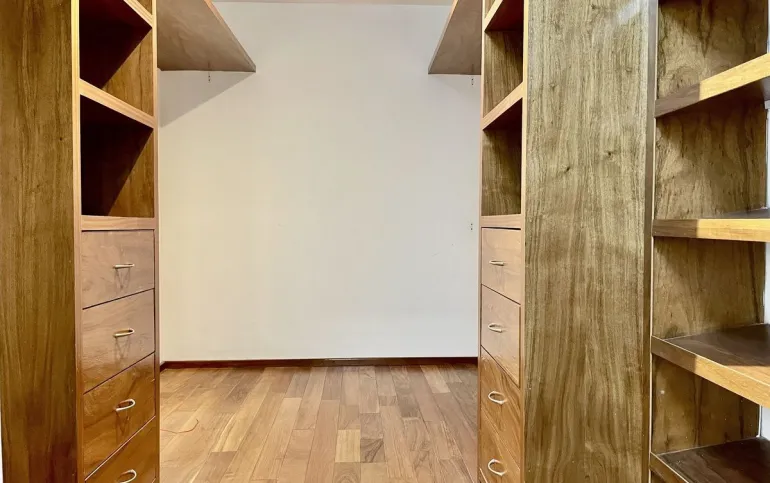 En el piso superior, encontrarás dos acogedoras habitaciones que comparten una encantadora terraza ideal para disfrutar de momentos al aire libre. La recámara principal es un verdadero refugio, equipada con un vestidor y un baño privado que te brindará la privacidad que mereces. Una amplia sala familiar que podrás convertir en una 4ta recámara si lo requieres. Todos los espacios cuentan con elegantes pisos de madera, añadiendo un toque de calidez y sofisticación.