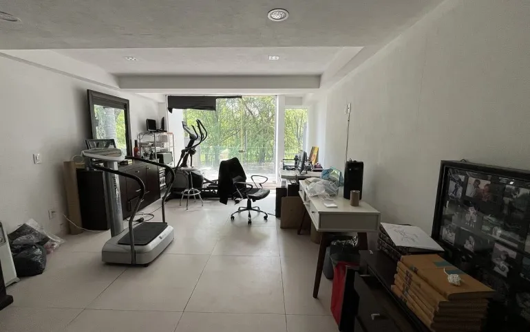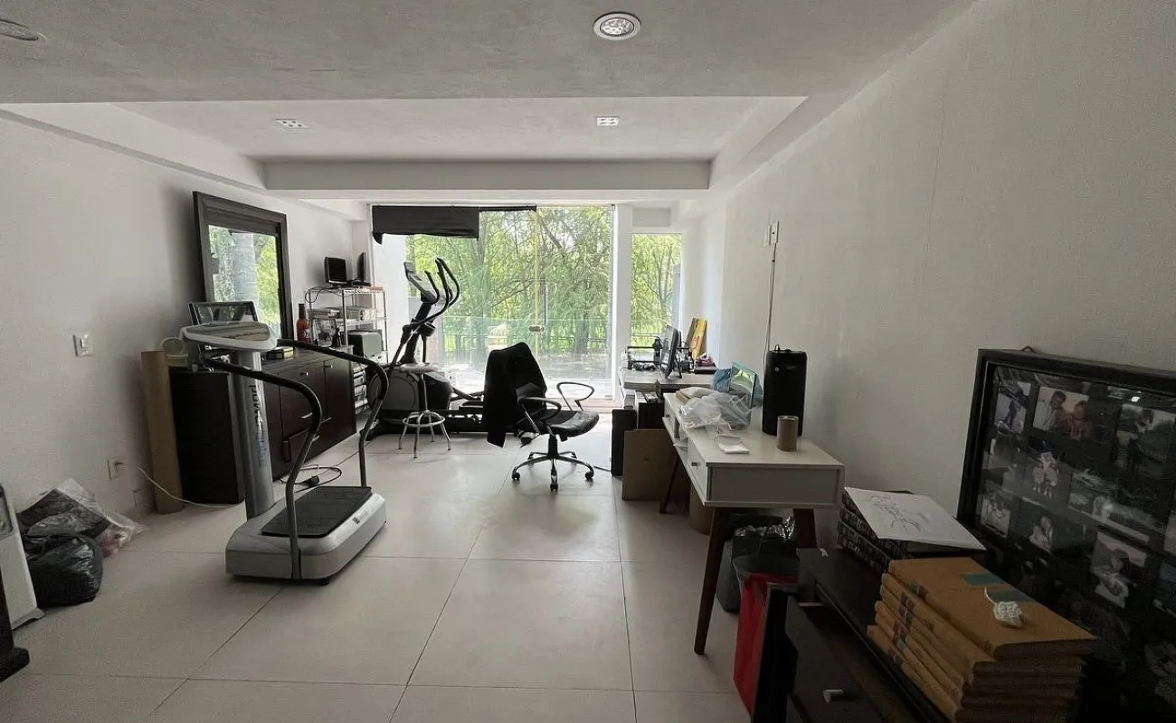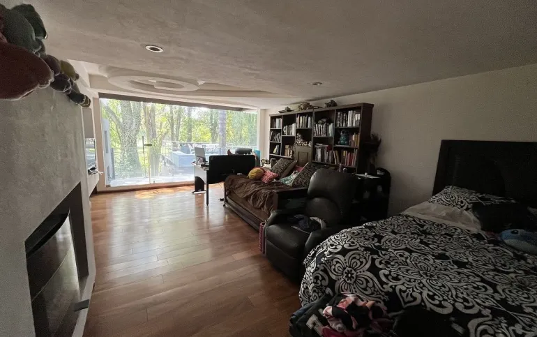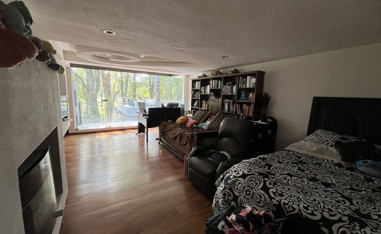 Abajo está la sala de TV y las 3 recámaras secundarias todas con terraza y 2 con baño completo y vestidor adentro de ellas y una más con baño completo afuera. En el área del jardín hay una terraza, fuente , jacuzzi para 12 personas. La parte de abajo es social y tiene cuarto de juegos, cuarto social, barra y cava así como 3 baños para mujeres y 3 de hombres con lavabo. Además de otras 2 terrazas una de ellas con chimenea y otra con una sombra espectacular que dan los enormes árboles del jardín.
