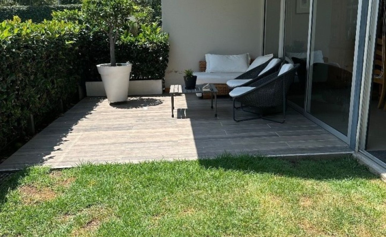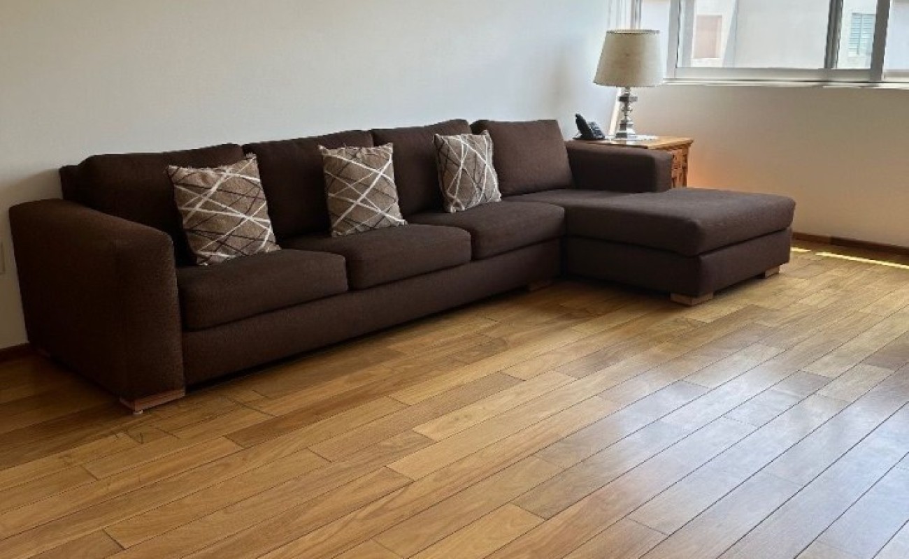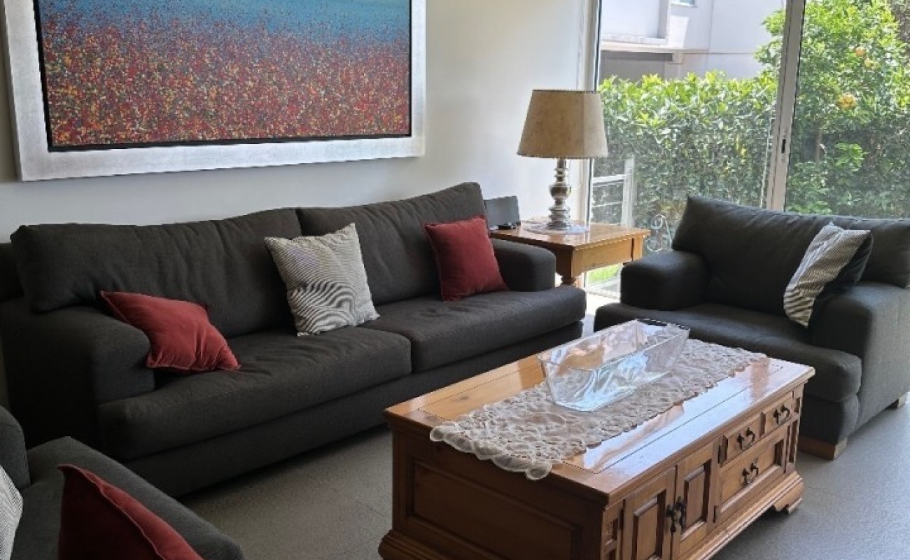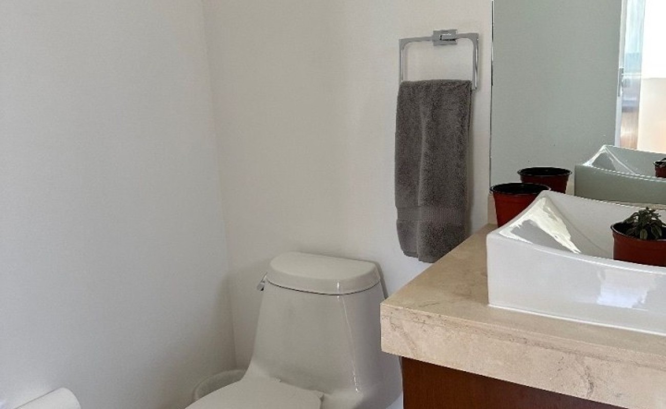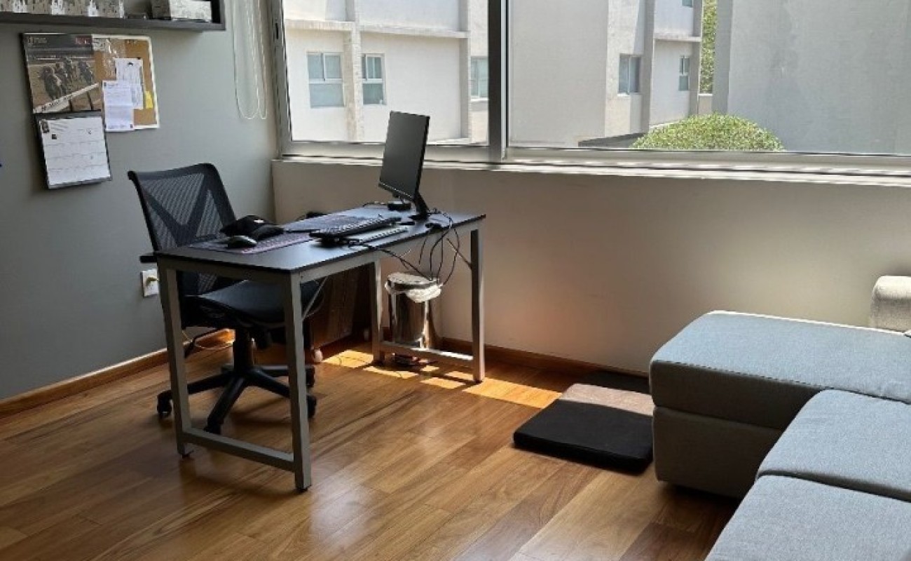 La sala y comedor se abren a una agradable terraza y jardín privado. Tiene una excelente cocina , gran cuarto de servicio, lavandería. Cuenta con tres estacionamientos y jardín común con acceso directo desde el jardín privado. Ideal para familias jovenes.
