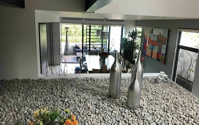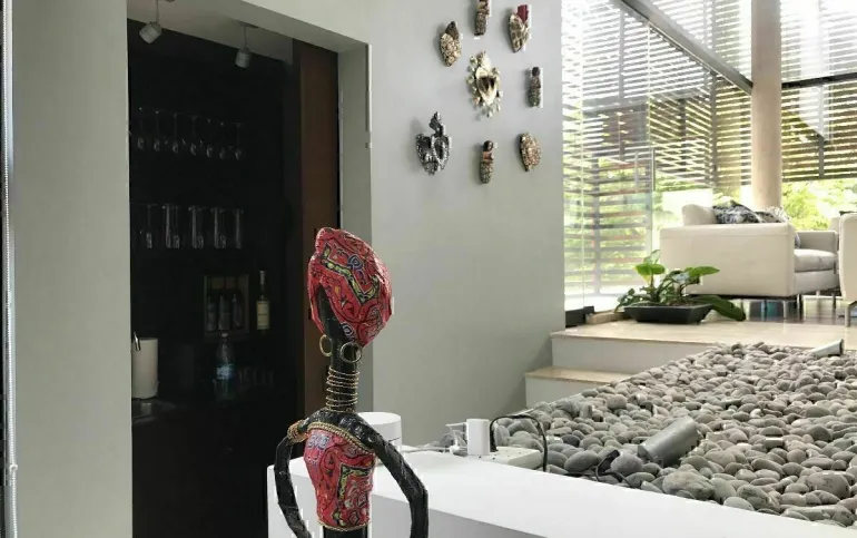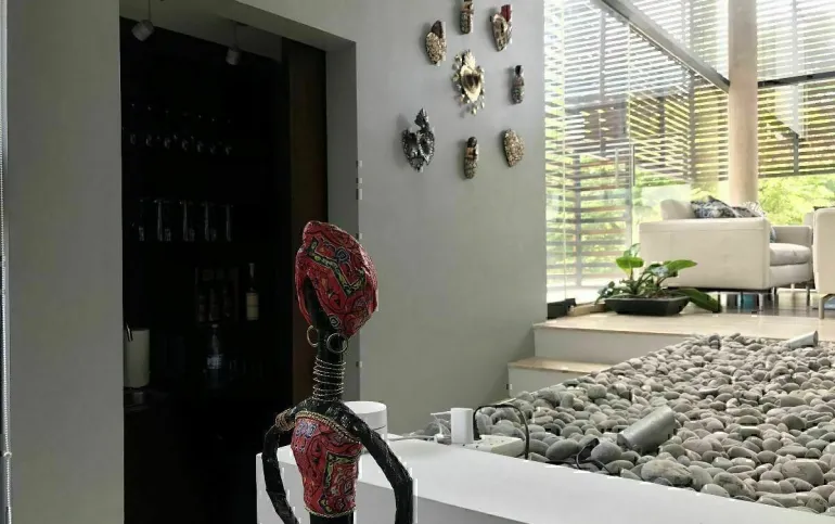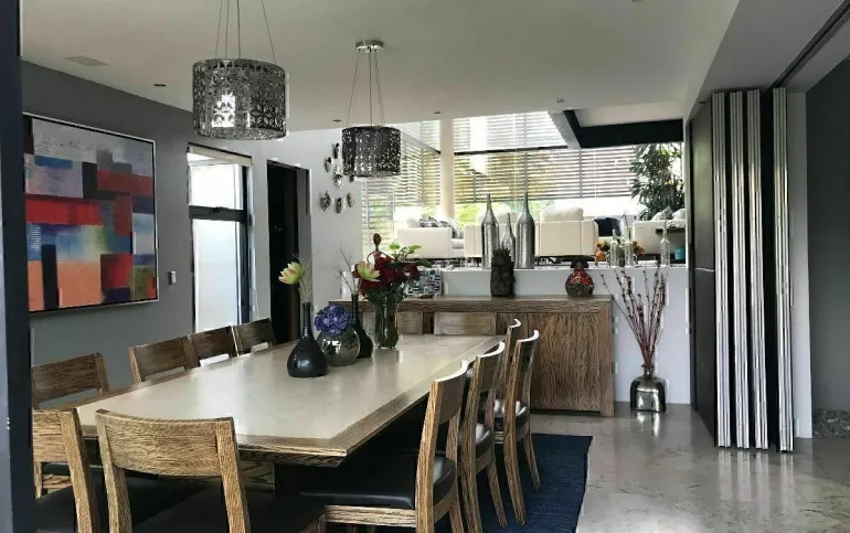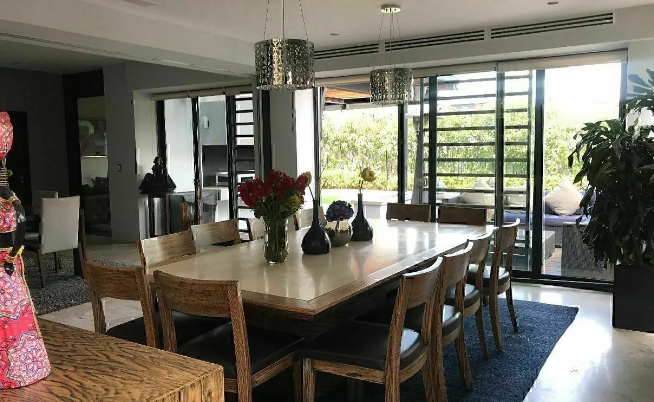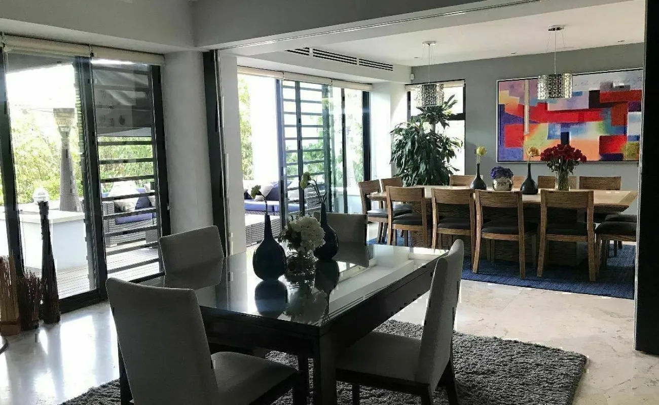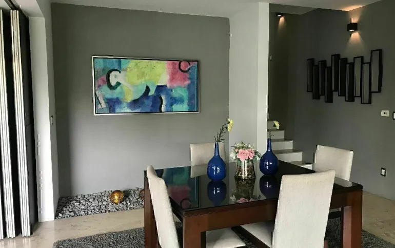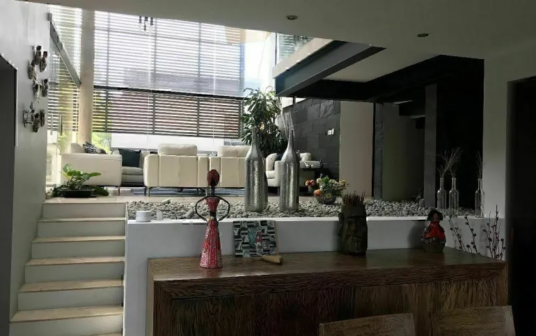 La casa está ubicada en Cumbres de Santa Fe, en una privada con seguridad. Además tiene una excelente distribución con hermosos espacios con varios desniveles.