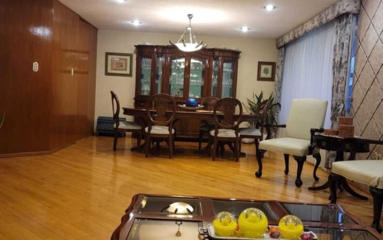 1er piso: despacho con medio baño (visitas), amplia cocina integral con desayunador y puerta de acceso al comedor, amplia sala-comedor con piso de duela de encino americano y generosa iluminación natural, vestíbulo, cubo de escalera.