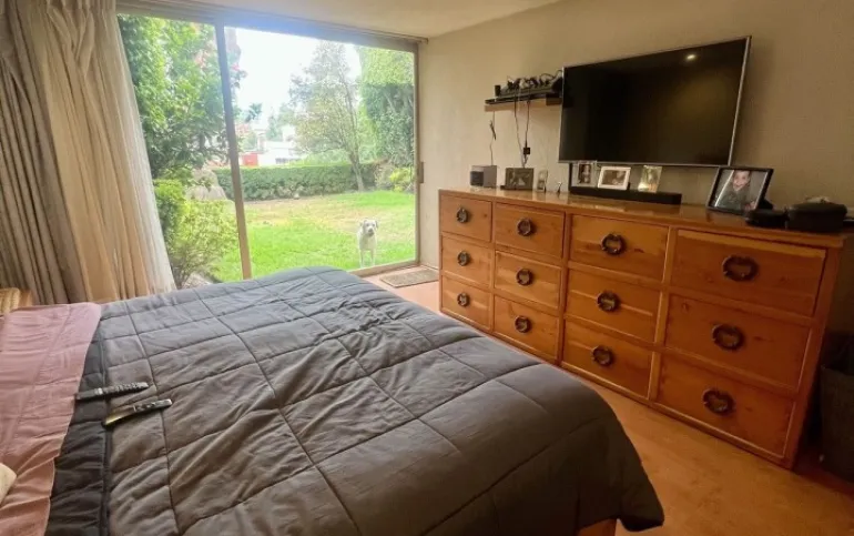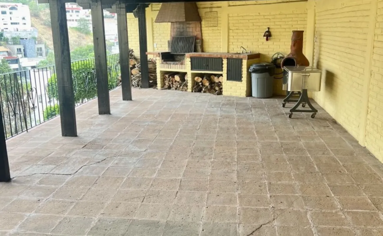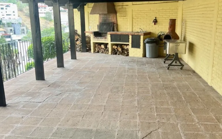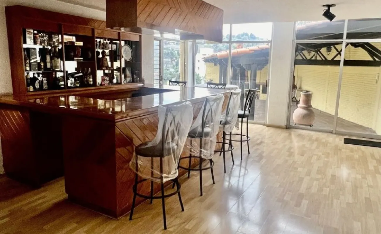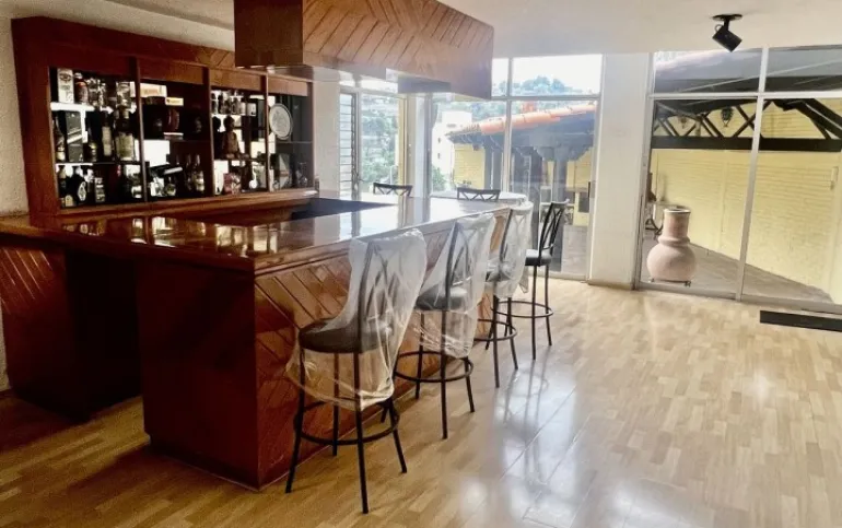 La casa cuenta además con un salón de fiestas/juegos con bar y otro medio baño, este espacio tiene salida a una gran terraza techada con asador, donde se puede disfrutar de una hermosa vista hacia Bosques de las Lomas tiene además y una escalera te lleva directo al segundo jardín donde también hay una oficina.