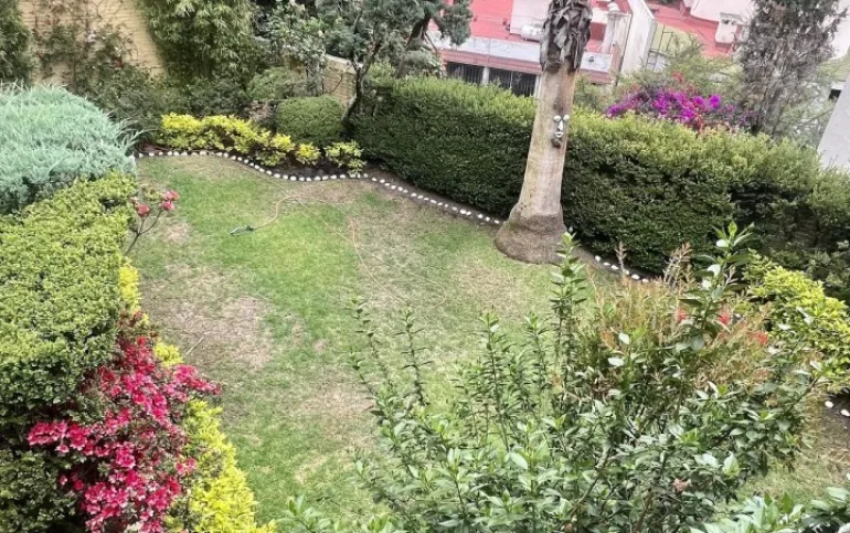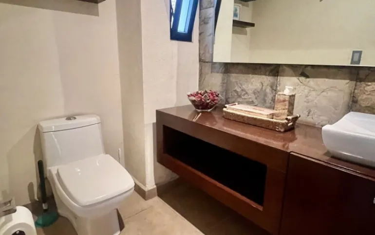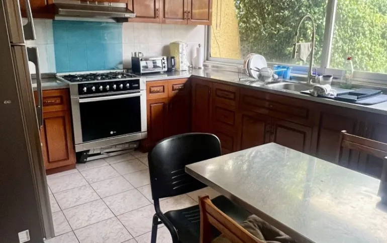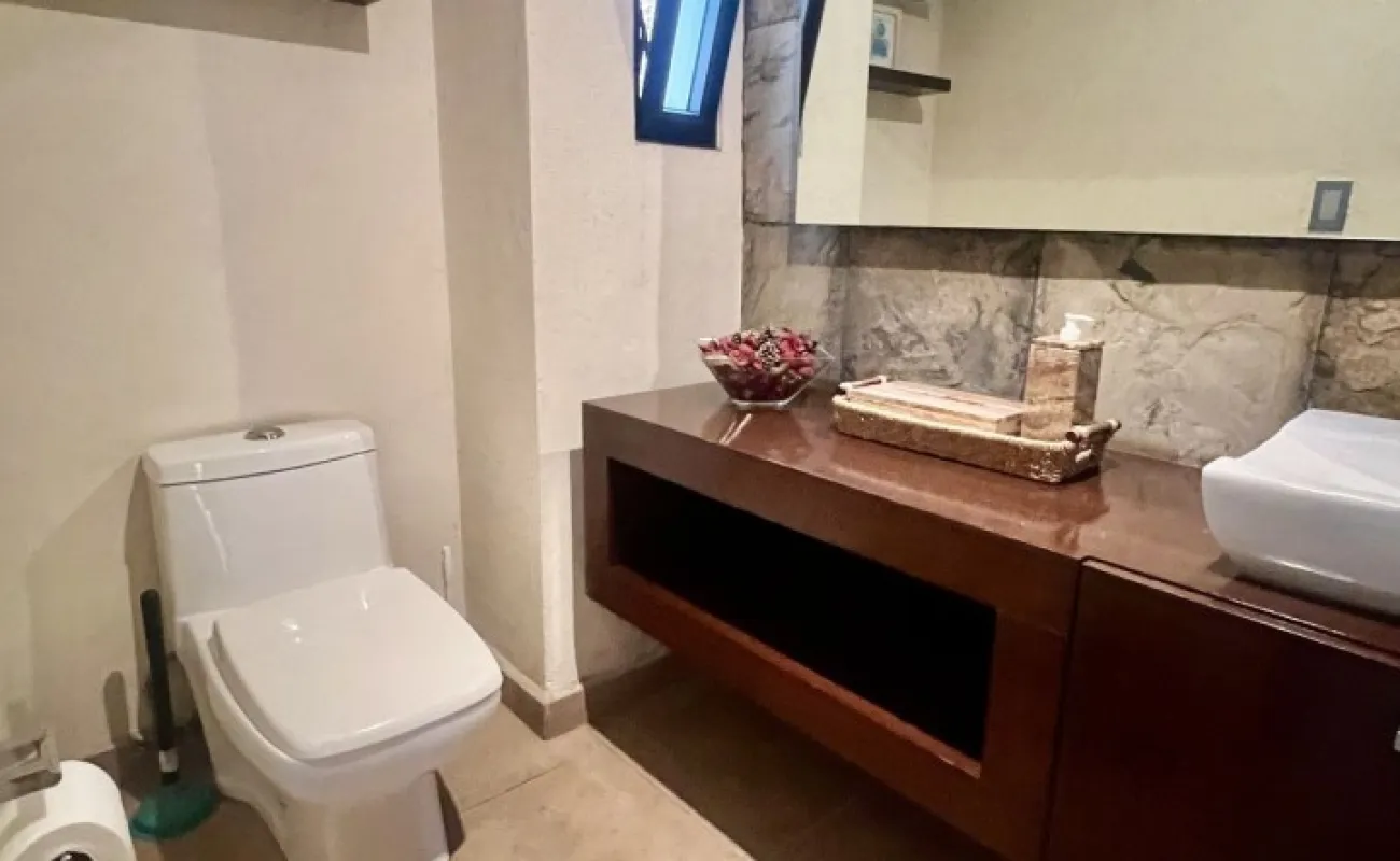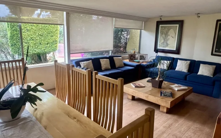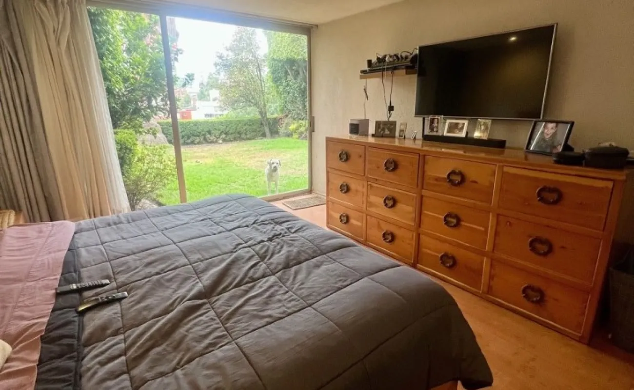 La casa cuenta además con un salón de fiestas/juegos con bar y otro medio baño, este espacio tiene salida a una gran terraza techada con asador, donde se puede disfrutar de una hermosa vista hacia Bosques de las Lomas tiene además y una escalera te lleva directo al segundo jardín donde también hay una oficina.
