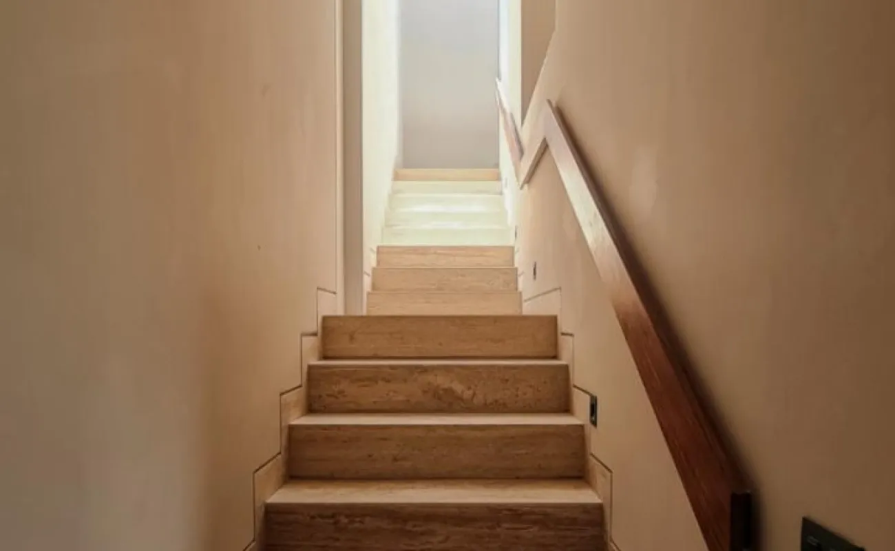 - Lambrín de madera de cumarú en plafón de planta baja.