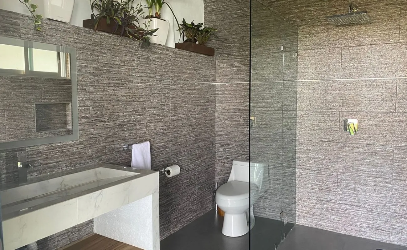 Cuatro recámaras, vestidor, clóset, sala de tv, 5 baños en total, área de lavado, caldera, calentador de gas, calentador solar, cisterna 10,000 lts. y tinacos 6,000 lts.
