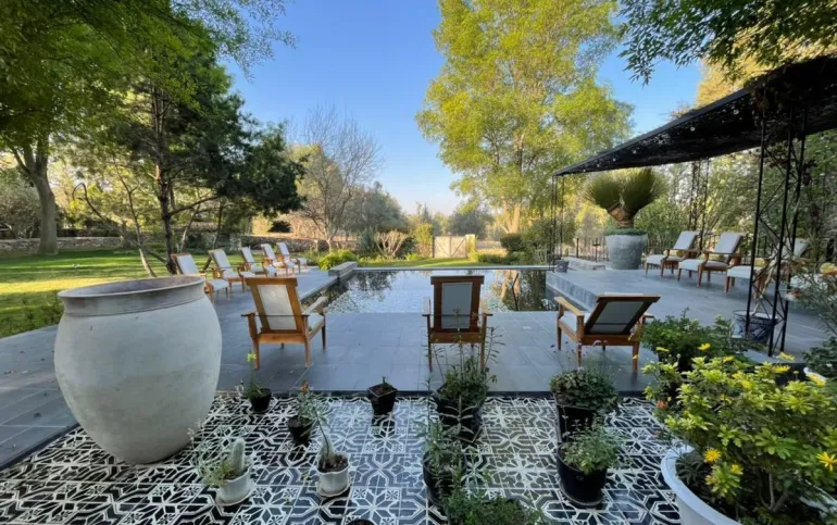 Cuenta con un terreno de 1200m2, una casa de 700 m" de construcción y 1200m2 de área residencial. El resto del terreno se utiliza para los viñedos, las lavandas y los olivos que se procesan dentro del desarrollo.