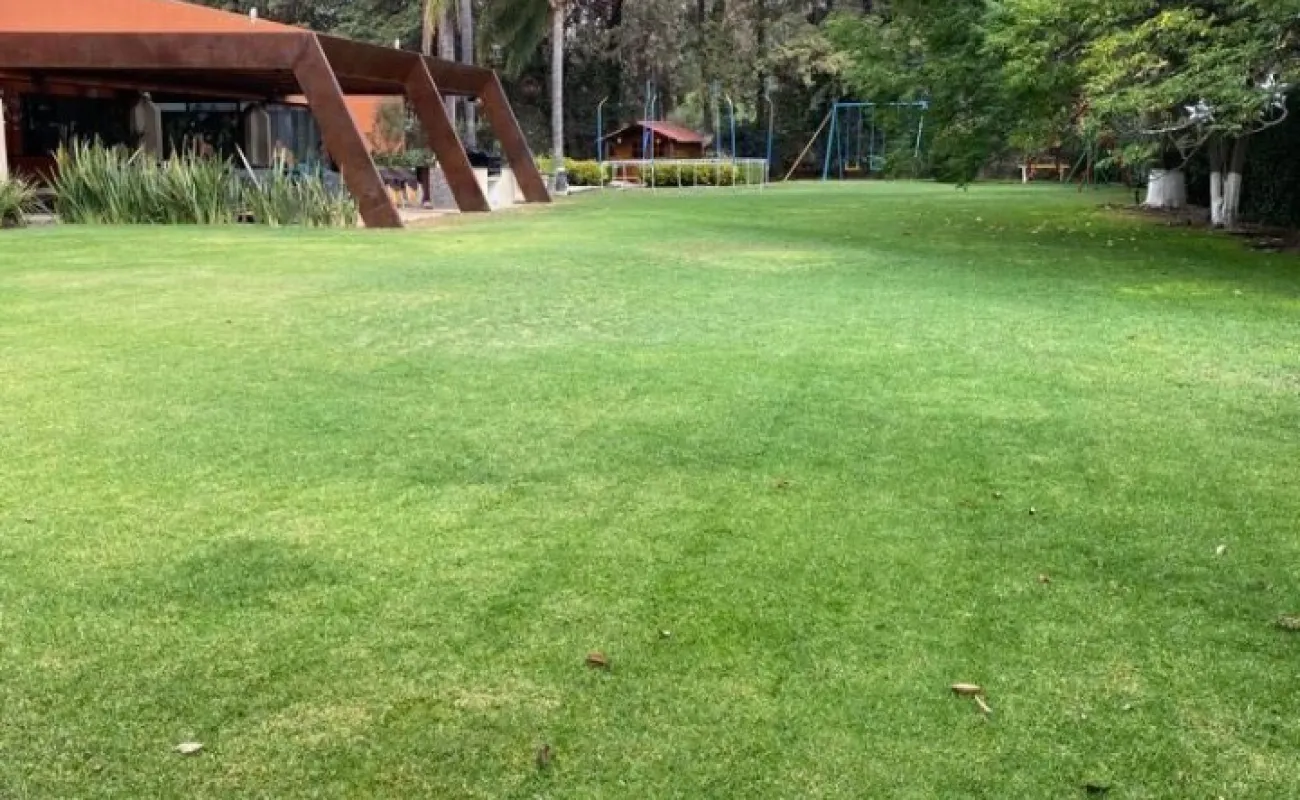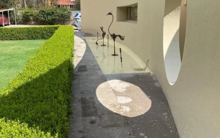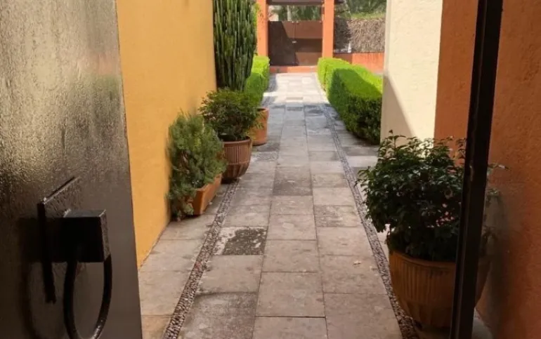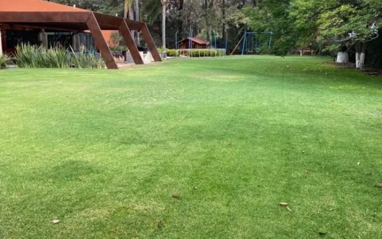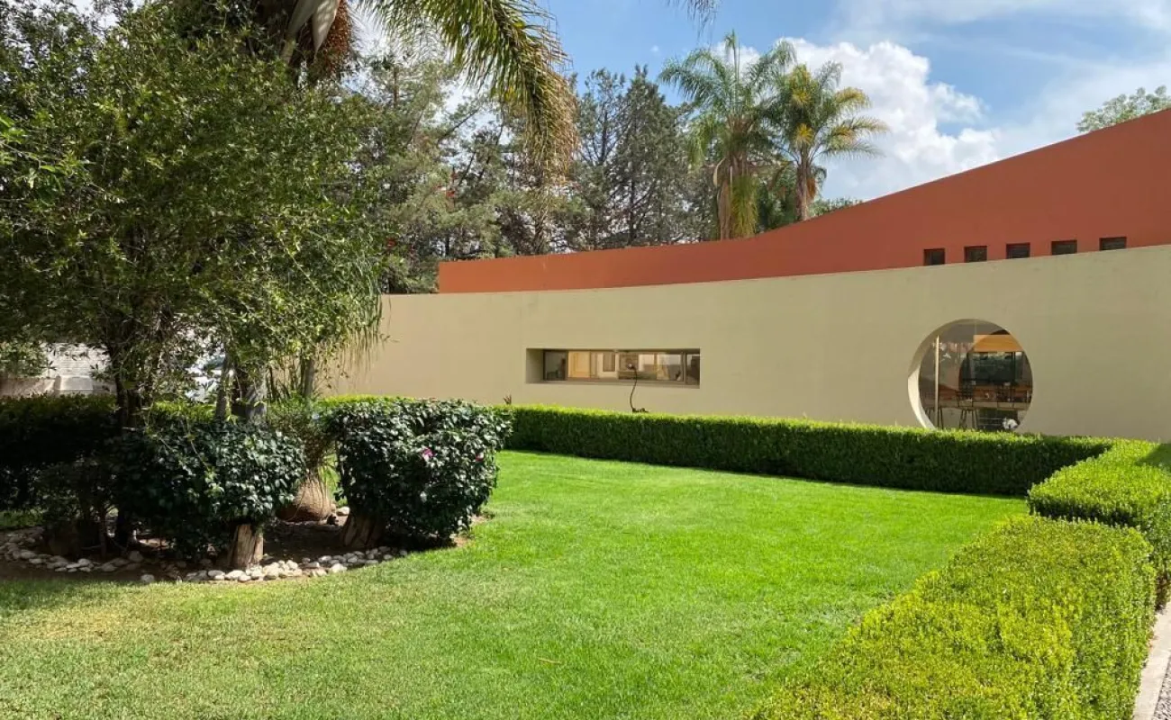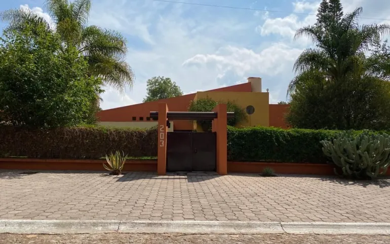 Estancia y comedor con doble altura, bar, cocina, 5 recámaras todas con baño. Espectacular terraza techada con jacuzzi, dos salas y dos comedores exteriores. Alberca techada, terrazas adicionales. Todas las comodidades. Zona de árboles frutales y huerto. Cuarto de servicio, bodegas. Casa de servicio adicional para una familia. Excelente estado de conservación.