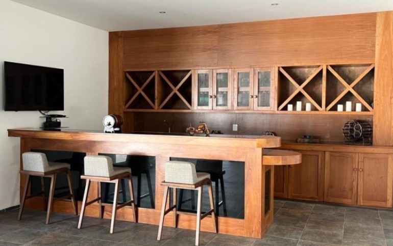 Primer piso: techos altos, sala y comedor, cocina abierta, terraza, bar, sala de juegos, jardín, terraza con jacuzzi, baño visitas.