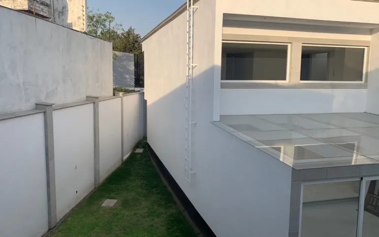 Preciosa Casa atemporal en Lomas de las Palmas, a lado de la caseta de Lomas del sol, con una superficie de Terreno de 450.76M2 y una superficie de Construcción 384.18m2, garage para 4 autos grandes, jardín y en la parte trasera 2 suites c/u con baño, pueden usarse para oficinas, o rentar 2 suites para estudiantes tienen entrada independiente por el jardín. La casa tiene amplia Sala y comedor con vista al jardín, una terraza techada muy amplia que ve también al jardín, oficina, medio baño de visitas, y cocina grande con alacena y lavandería además un espacio muy bonito para antecomedor, la altura en la sala es doble y tiene mucha luz natural y domos por todas partes. Las recámaras son 3 y dos de ellas comparten baño amplio doble y la principal tiene su vestidor, sala y baño muy amplio, además un sala de TV abierta. Es un casa totalmente nueva elaborada con un estricto control de calidad en un calle cerrada de 4 casas con acabados de lujo pisos madera en recámaras, cantera, buena ventanería, puerta eléctrica en garage y aún se puede hacer la carpintería al gusto, se entrega toda acabada y se puede ver con previa cita. El precio de cierre en las compraventas, ya sea con recursos propios o crédito hipotecario de cualquier institución pública o privada, será determinado entre las partes (comprador y vendedor) y este precio en ningún momento incluye los gastos correspondientes al crédito, gestoría, avalúo y/o impuestos por escrituración ante Notario. Tampoco incluye el mobiliario. En cumplimiento de la NOM247 ponemos a su disposición el área de atención a clientes donde con gusto le atenderemos y donde también podrá consultar nuestro aviso de privacidad.