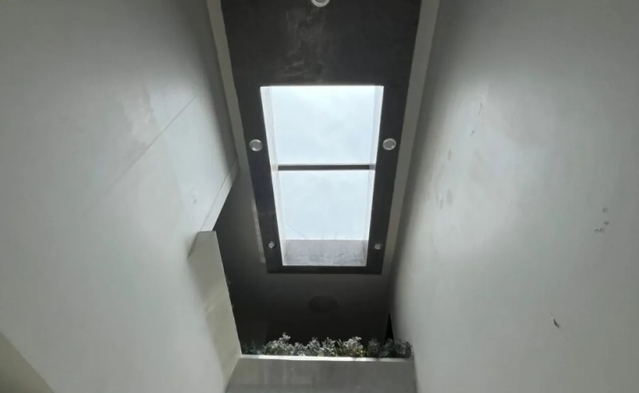 - Pasillo central con doble altura y tragaluz de vidrio templado que ilumina el corazón de la casa