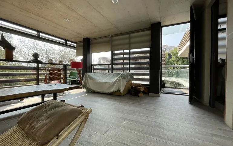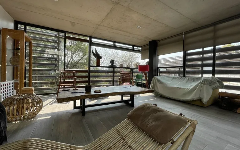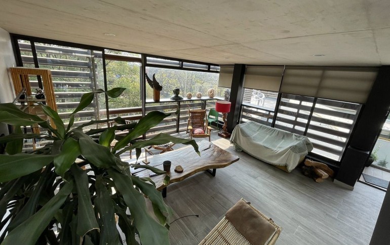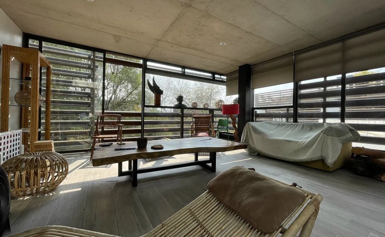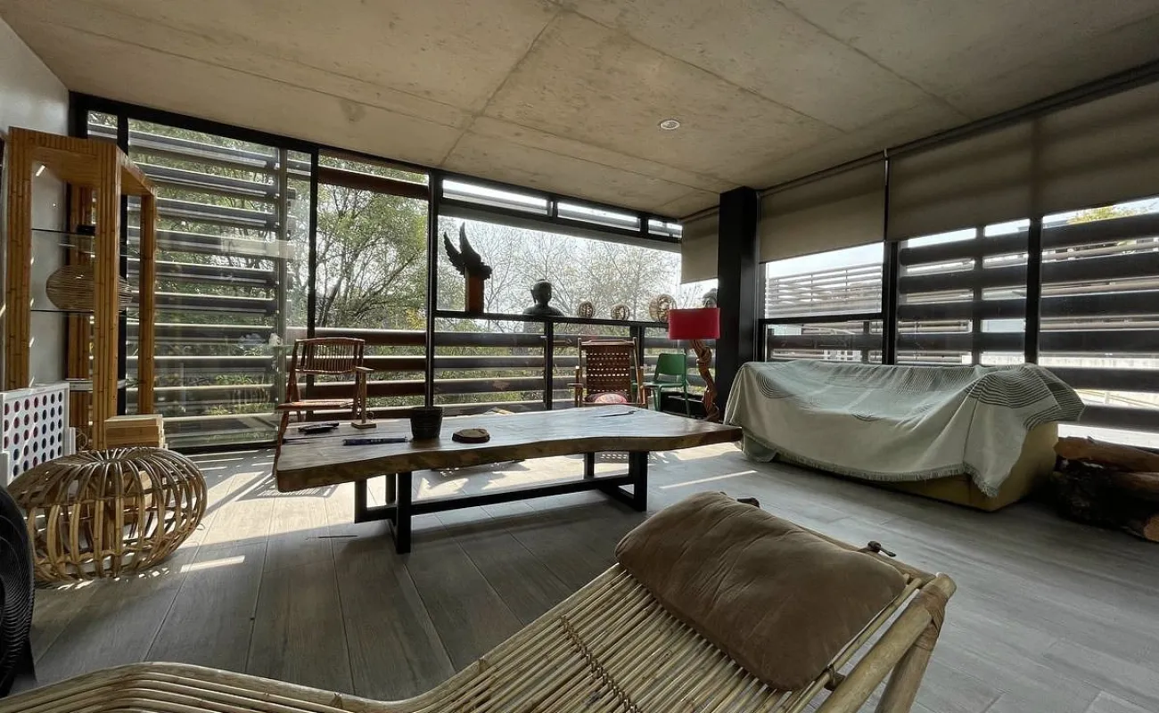 Nos recibe la sala con vista verde a todos los arboles.