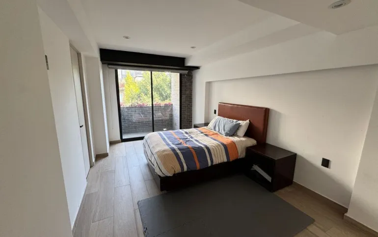 En primer nivel sala y comedor con cocina abierta; dos amplias recamaras una de ellas con lindisima terraza, ambas con closet y comparten baño.