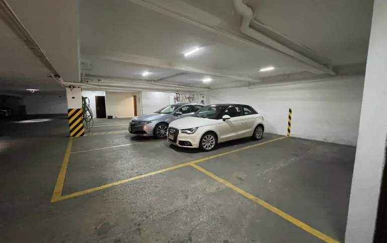 Cuenta con 3 lugares de estacionamiento quiza 4 si fueran coches chicos.