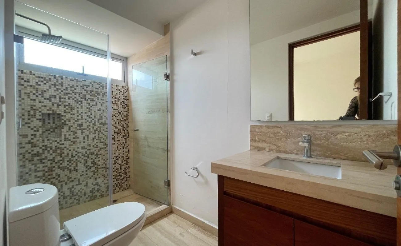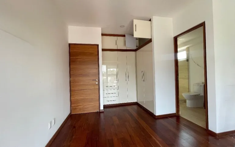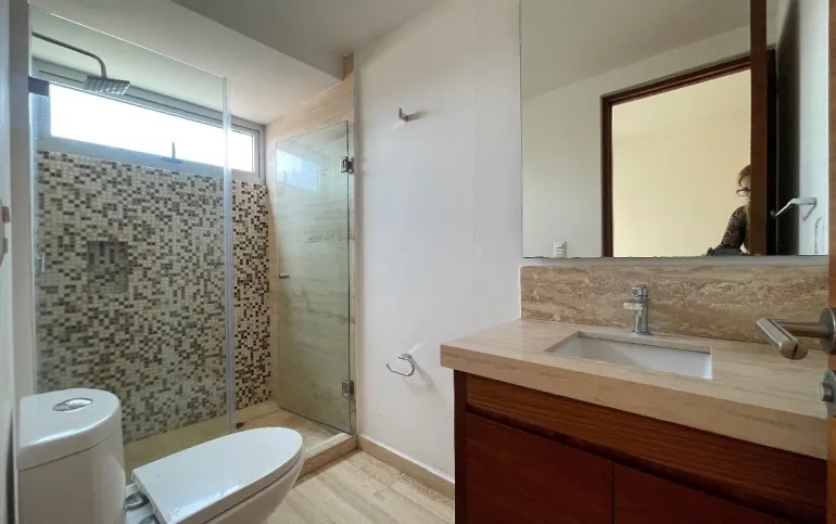 Las 3 recámaras tienen baño completo dentro de la habitación. Adicionalmente cuenta con medio baño de visitas y clóset amplio de blancos en el pasillo.