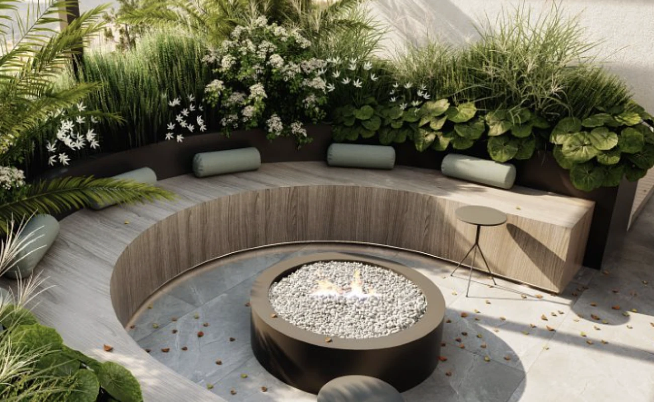 Amenidades premium: gimnasio equipado, área de yoga, fire pit, 2 elevadores y vigilancia 24/7.