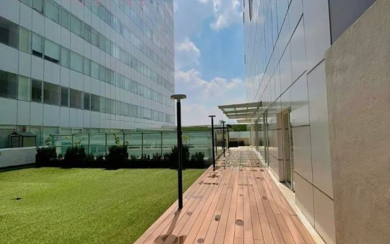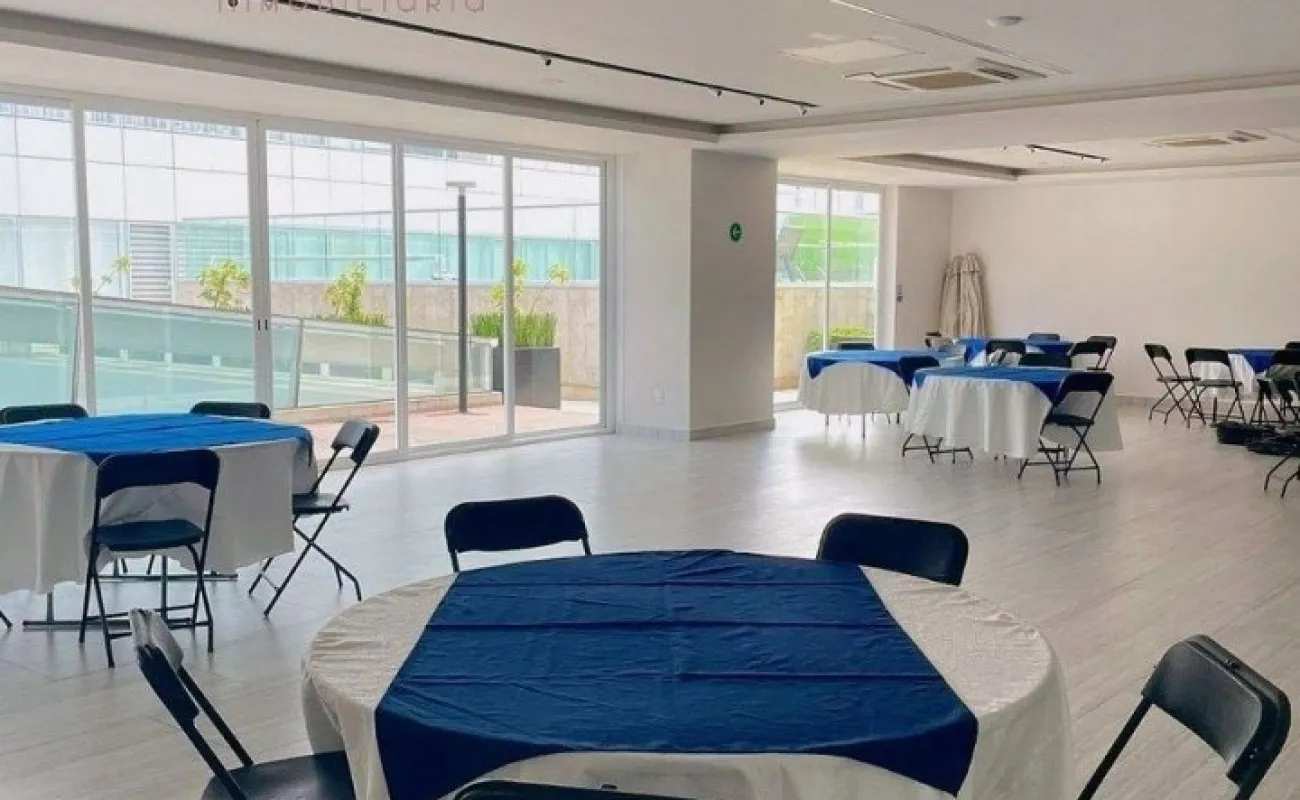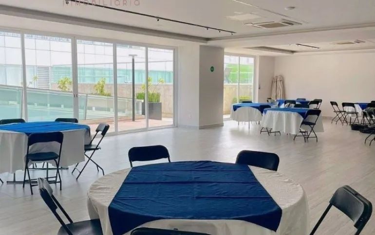 ÁREA DE SERVICIO: Los residentes pueden disfrutar de una amplia gama de amenidades, incluyendo una alberca, gimnasio, salón de juegos, salón de usos múltiples y una terraza jardín común, perfectos para el esparcimiento y la convivencia.
