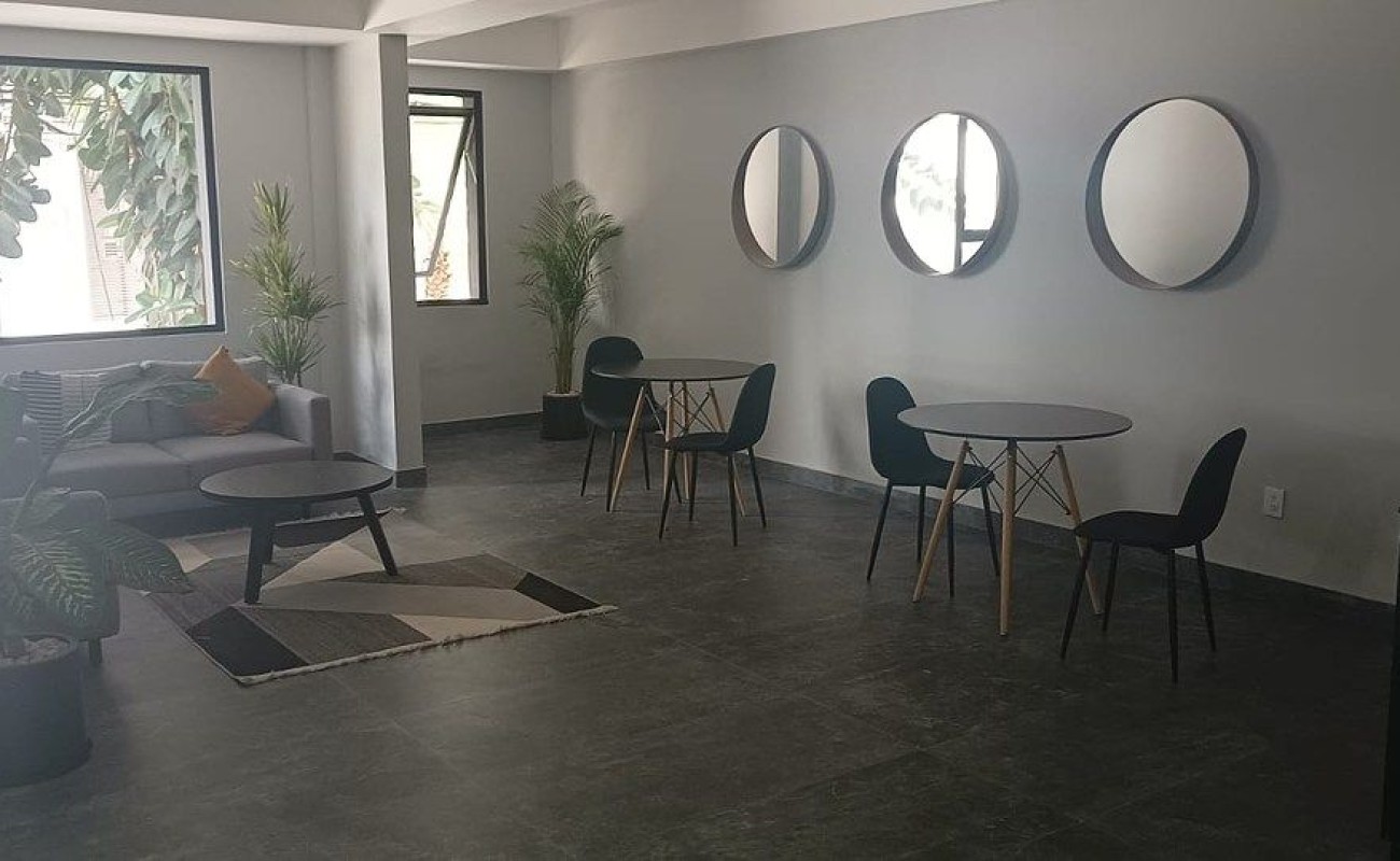 Con superficie de 73.89 m2, con balcón, con sala comedor, cocina integral abierta hacia la estancia barra de granito y estufa eléctrica, área de lavado, recamara principal con closet baño, recamara secundaria con closet, baño completo que comparte con visitas, estacionamiento cubierto para un auto, bodega.