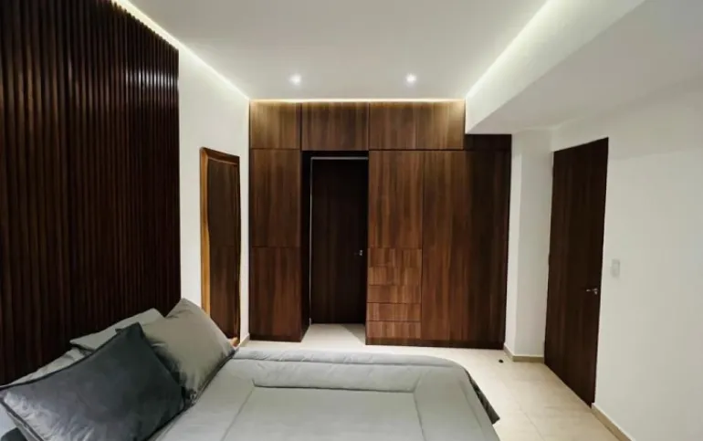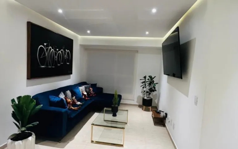 Chapa Eléctrica y lambrija luces Led con iluminación indirecta lo cual hace más acogedor el lugar, Persianas Blackout actualmente se muestra amueblada para que luzca más