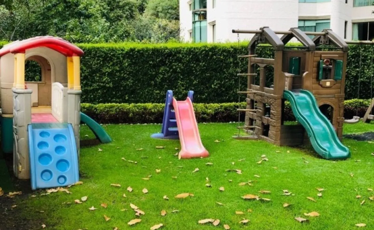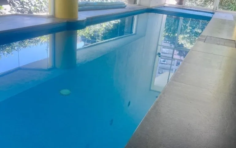 Alberca, salón de eventos, pequeño gimnasio, jardín.