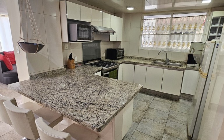 - Cocina integral abierta con barra de granito