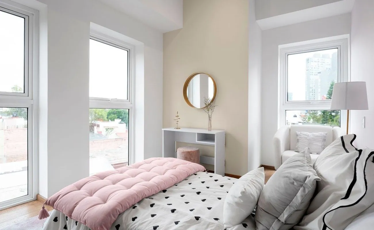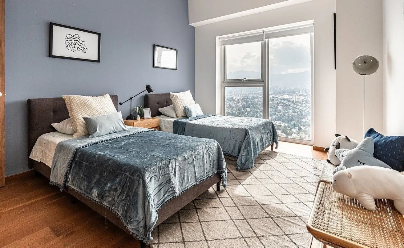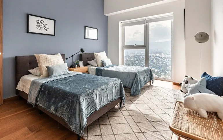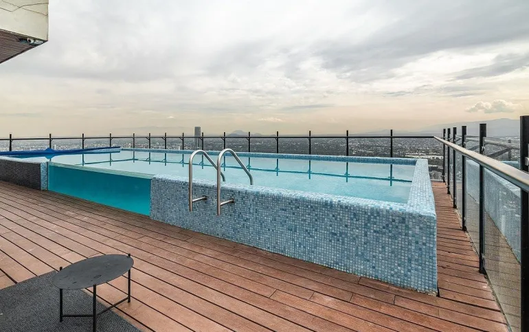 El departamento ofrece amenidades como alberca, gimnasio, área de juegos infantiles, salón de usos múltiples, área de eventos, jacuzzi y espacio de co-working. Además, cuenta con caseta de guardia y seguridad privada para tu tranquilidad.