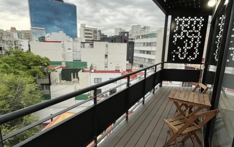 Departamento en venta se encuentra en el Piso 5, interior, superficie habitable 113 m² consta de: Dos recamaras, La recamara principal tiene closet muy amplio, baño completo con cancel de vidrio templado, y terraza que comparte con la segunda recamara con una formidable vista. Segunda Recamara con closet de piso a techo, segundo baño completo también con cancel de vidrio templado, acabados de lujo, Sala, comedor, amplia con excelente distribución, ventilada e iluminada, cocina integral abierta con barra de granito, cuarto de lavado integrado, balcón muy amplio con excelente vista, bodega en el sótano y 2 lugares de estacionamiento fijos, techados e independientes. El condominio tiene una edad de 4 años, Vigilancia 24/7, Circuito Cerrado, Elevador, Roof Garden común y Roof Garden común para mascotas, Mantenimiento $3,650.00 y son 27 departamentos. La ubicación es entre las calles de Colorado y Dakota a una calle de insurgentes sur a 2 calles de World Trade Center. Cuenta con acceso vehicular por las calles de Ohio y Colorado. Informes al 55-85332148.