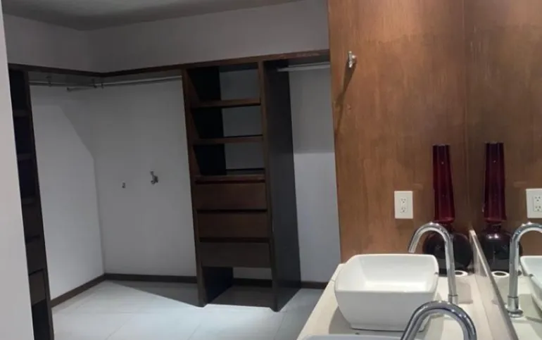 3 recámaras, cada una con baño, con piso en madera (una de ellas con tina y doble lavabo), persianas, baño para visitas, cuarto de servicio, lavandería, 2 estacionamientos, vigilancia, elevador.