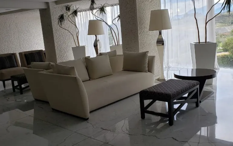 El departamento tiene 11 balcones. Cuenta con recibidor, sala, comedor, cocina abierta, con pisos de mármol de Carrara.