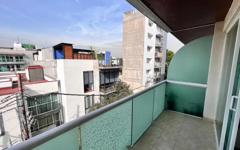 Departamento en Venta en Roma Sur con balcón Exterior con 70m2. Excelente ubicación en la Colonia Roma Sur a pasos de importantes vías y comercios. Área de Sala-Comedor con balcón. Cocina Integral (remodelada) Cuarto de Lavado integrado al departamento. 2 Recámaras c/u con closet y doble vidrio hermético - antiruido) El departamento cuenta con 2 Baños completos. *Pisos de Porcelanato y Piso Laminado en habitaciones, Estacionamiento para 1 coche es techado y Portón Eléctrico. Antigüedad 12 años Excelentes Condiciones del edificio y del departamento. Elevador, Salón de Eventos Vigilancia 24 hrs., CCTV (Ext. e Int.) Mantenimiento $2,500